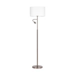 Eros Floor Lamp 1xE27 Max.60W 1xLED Integrated 160lm 3000K 3W Satin Metal/White Fabric Shade/Transparent PVC Cable 1232127