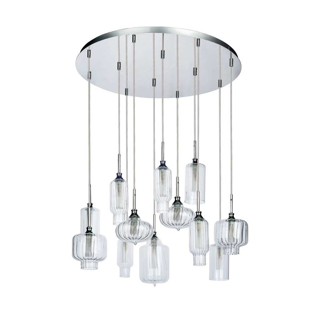 12 punktowy zwis szklany przeźroczysty o średnicy 65cm.
