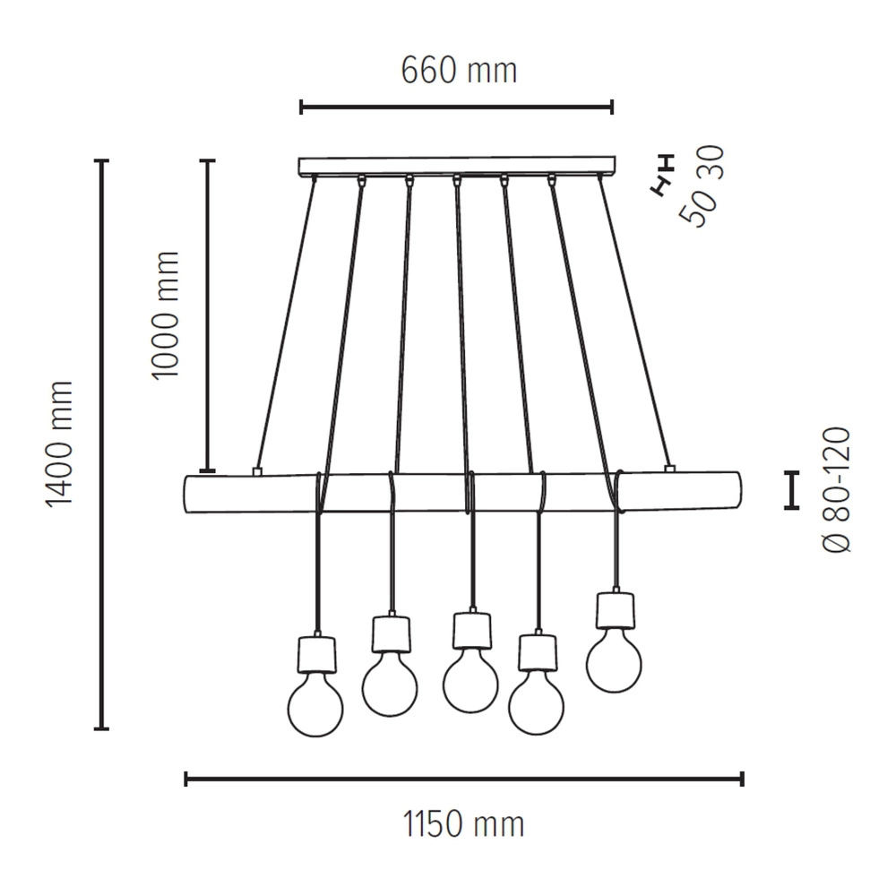 Trabo Pino Pendant Lamp 5xE27 is an elegant addition to large spaces that combines stained pine with industrial black PVC and metal. Thanks to five E27 sockets that can accommodate bulbs up to 60W each, this lamp provides strong and even lighting, ideal for spacious interiors such as a dining room, living room or above a large table. Stained wood combined with black details create a stylish contrast that attracts attention and gives the interior a modern character. Trabo Pino Hanging Lamp is an excellent choice for people looking for a functional and aesthetic lighting solution.