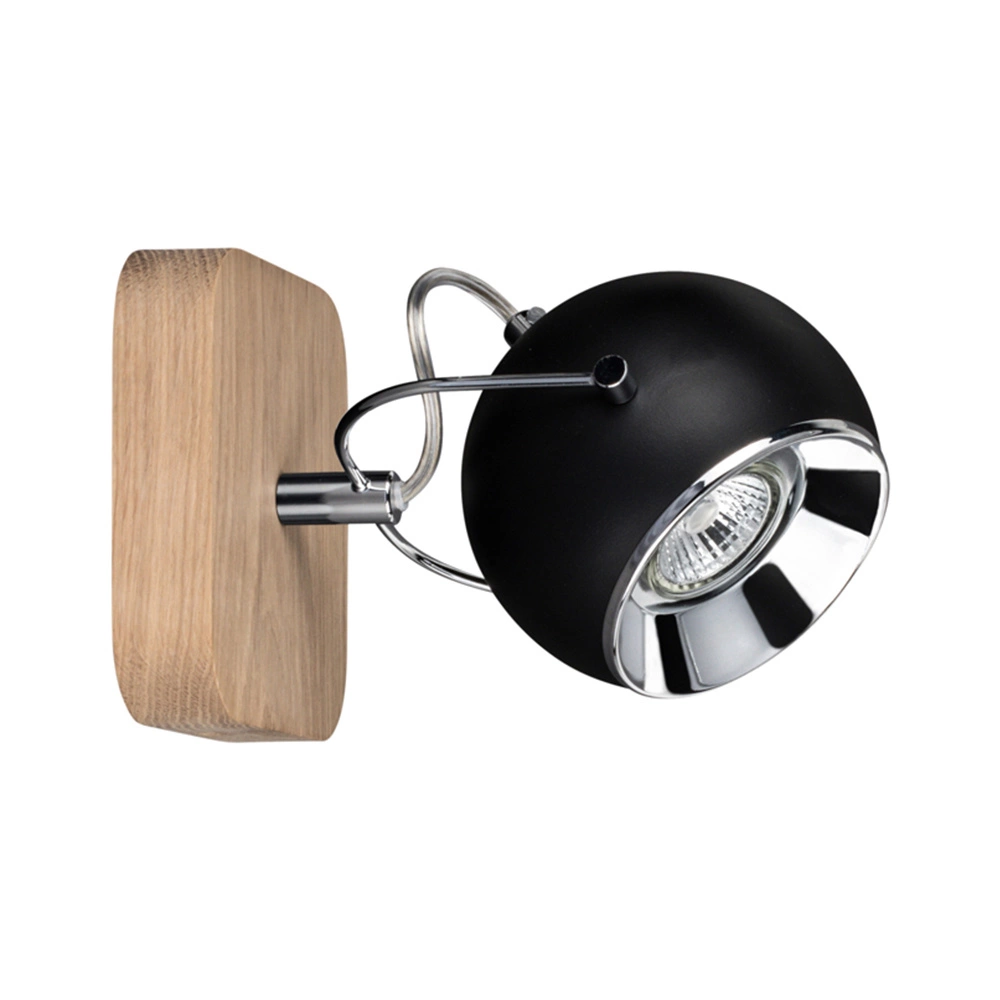 Add modern charm and warmth to your interior with the Ball Wood Incl wall lamp. 1xLED GU10 5W. This stylish fixture combines elegant oiled oak with deep black metal, creating an eye-catching accent that fits perfectly into a variety of arrangement styles. One 5W GU10 LED source provides concentrated, energy-saving lighting, ideal for corridors, bedrooms or above tables. The combination of oiled oak and black metal gives the Ball Wood lamp a modern and elegant character, and the minimalist design makes it versatile and adapts to various interiors. The Ball Wood wall lamp is the perfect solution for people looking for a combination of natural beauty and modern style.