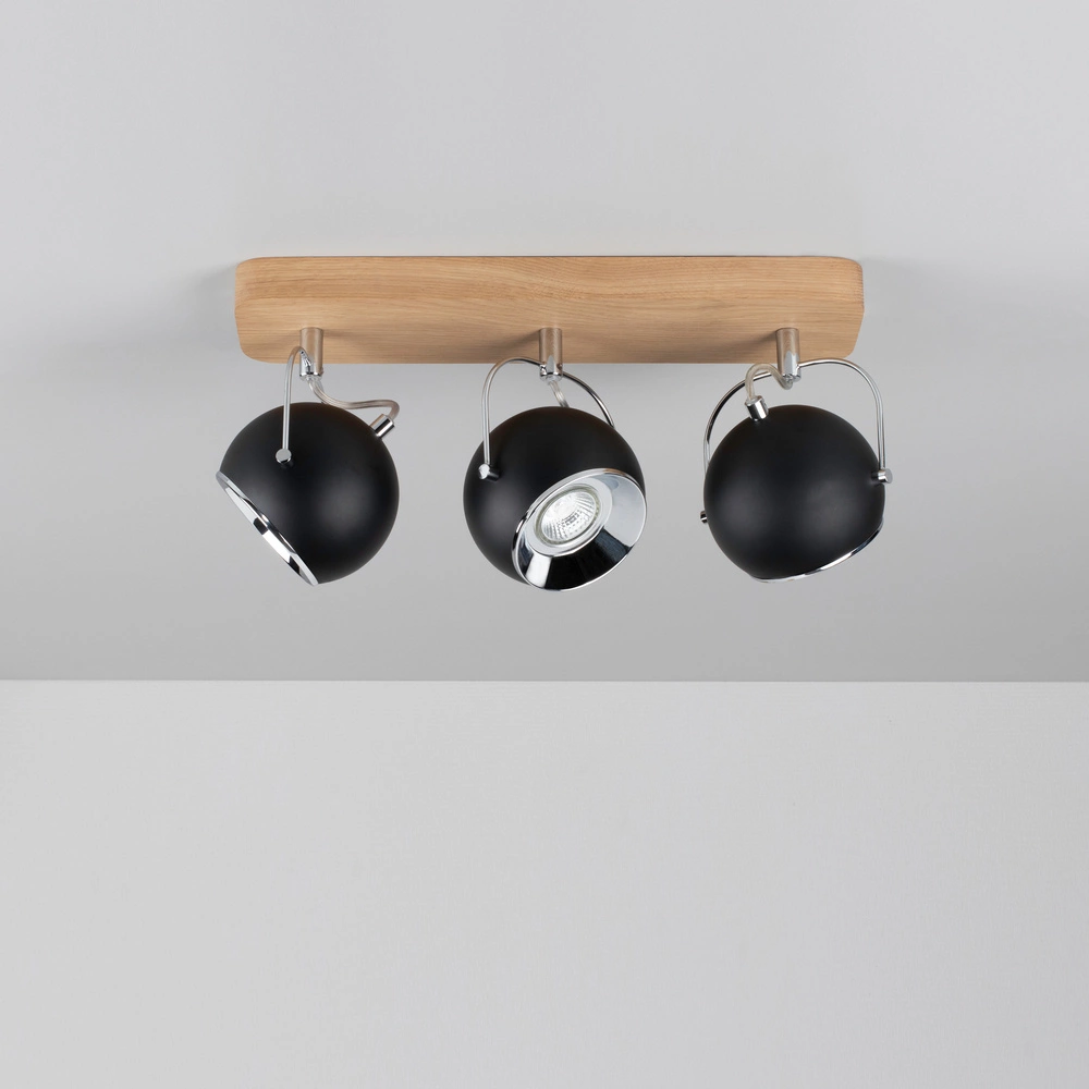 Ball Wood Ceiling Lamp Incl. 3xLED GU10 5W Oiled Oak/Black 5133374