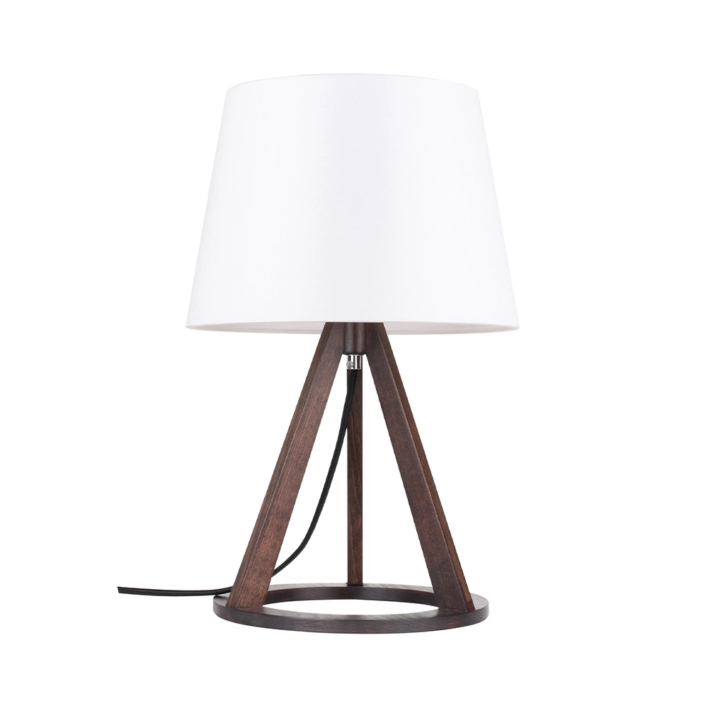 The Konan Table Lamp with walnut-colored beech wood and a white fabric lampshade is an excellent choice for people who value classic design with modern accents. Beech wood in a walnut shade introduces natural warmth, while the black braid and white fabric lampshade add freshness and elegance. Offering a maximum illumination of up to 25W, the lamp is perfect as a decorative element on a desk, bedside table or in the living room.