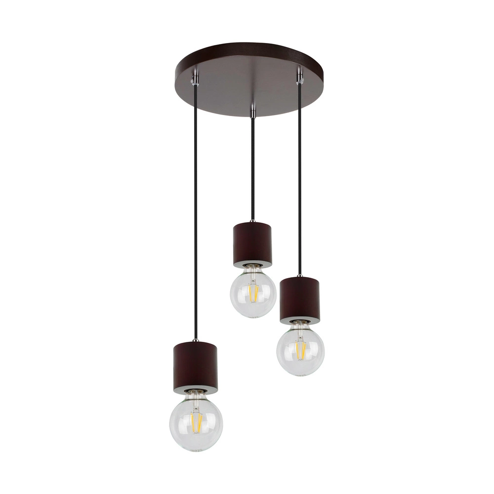 Trongo Round Pendant Lamp 3xE27 Max.60W Walnut Beech Wood/Black Fabric Cable 7069376R