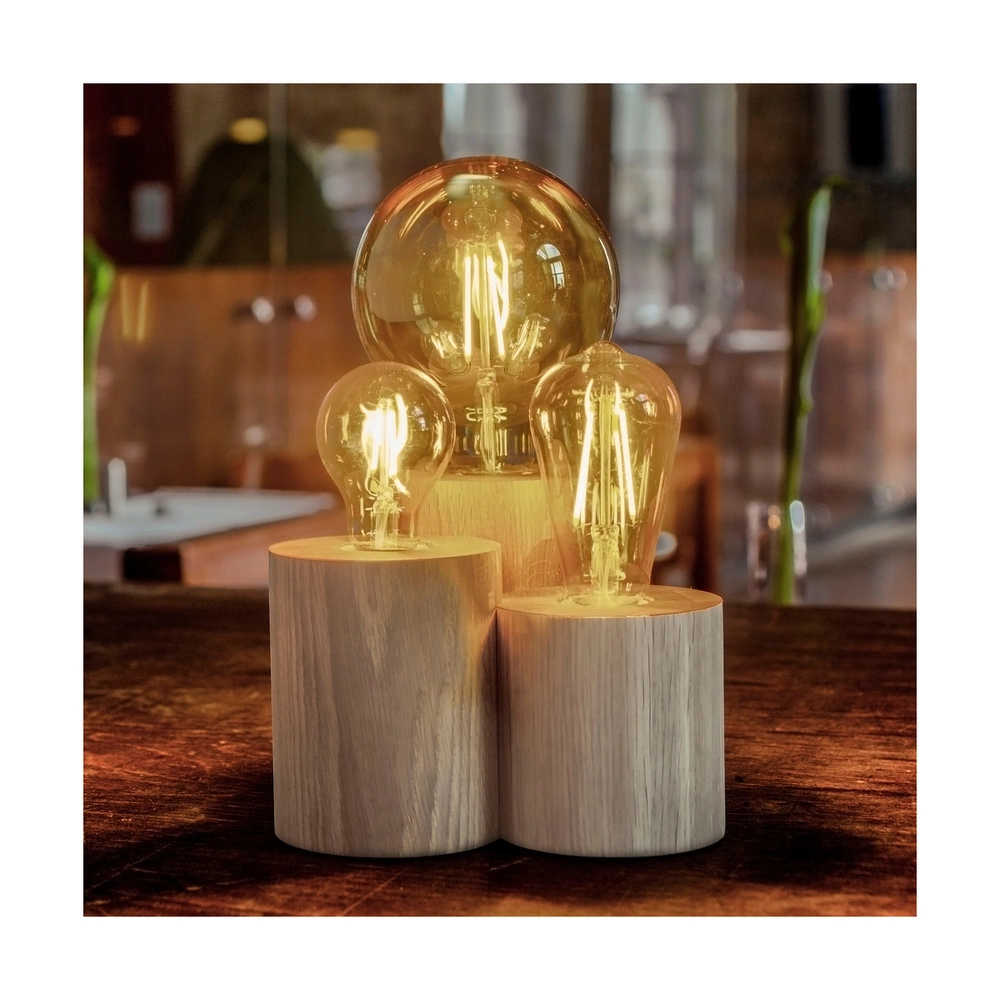 Vincent Round Table Lamp 3xE27 Max.15W Oiled Oak/Black Fabric Cable 2266374