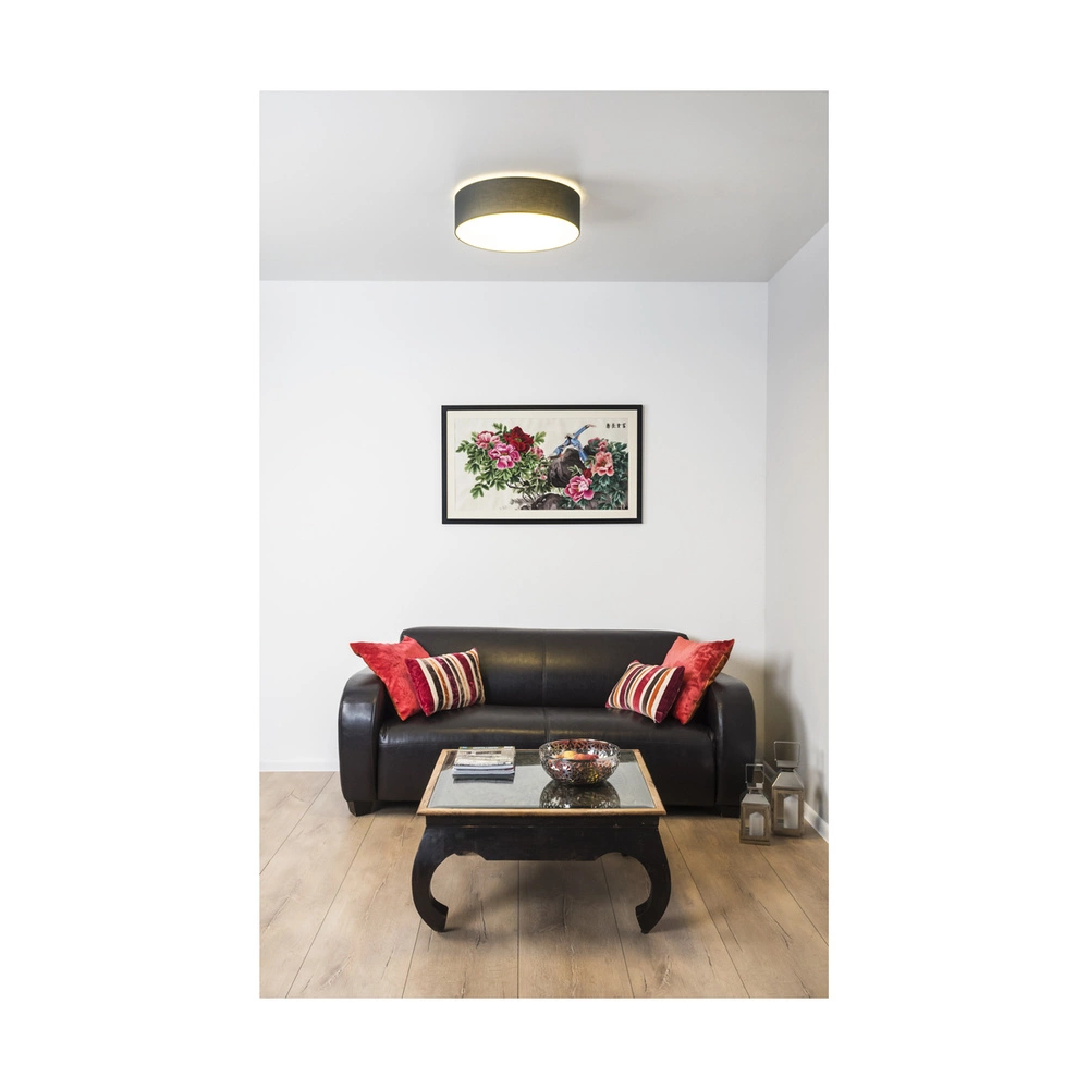 Elevate your space with the Josefina Ceiling Lamp, where modern design meets sophisticated functionality. Featuring a sleek white metal base paired with a striking anthracite fabric shade, this lamp adds a touch of contemporary elegance to any room. The integrated LED technology delivers a robust 1650 lumens of warm 2700K light, creating a cozy and inviting atmosphere while being highly energy-efficient with its 18W power consumption. Perfect for larger spaces such as living rooms, dining areas, or open-plan kitchens, the Josefina Ceiling Lamp blends the durability of metal with the luxurious texture of fabric, offering both a stylish design and efficient illumination.