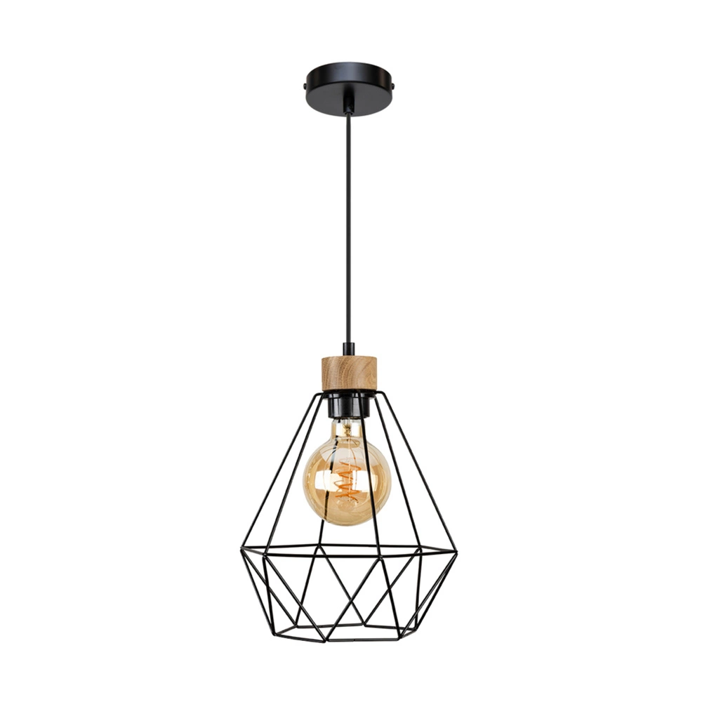 Diament Pendant Lamp 1xE27 Max.60W Oiled Oak/Black Metal/Black PVC Cable 21822104