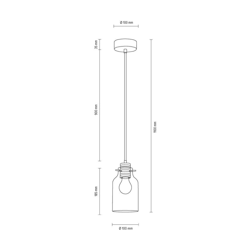 Alessandro Pendant Lamp 1xE27 Max.60W Walnut Beech Wood/Black Metal/Black PVC Cable/Transparent Glass 1010421420867