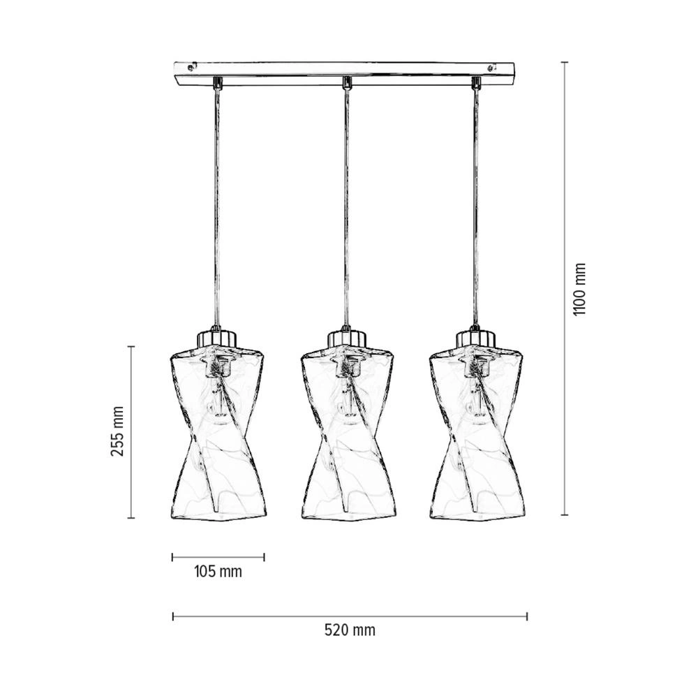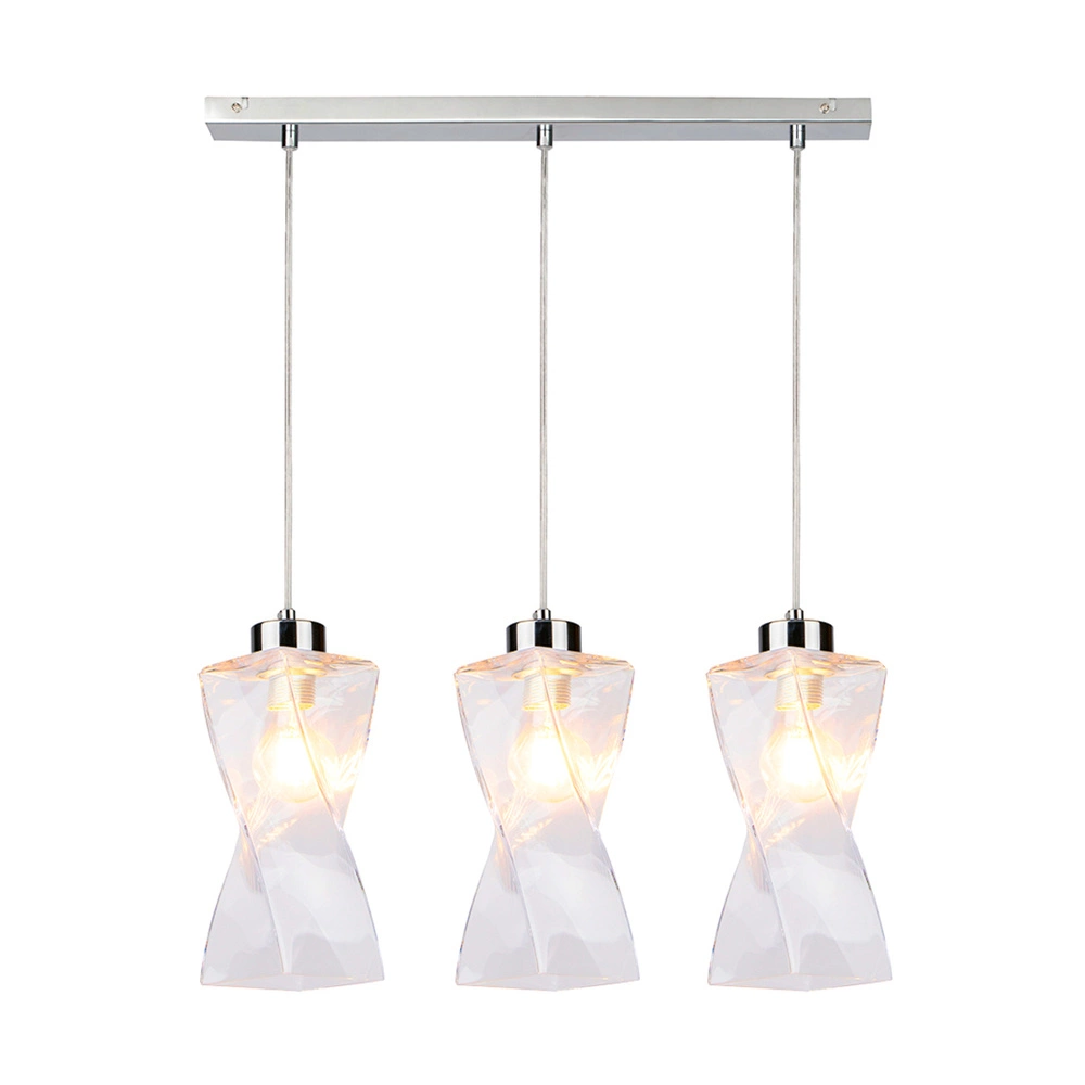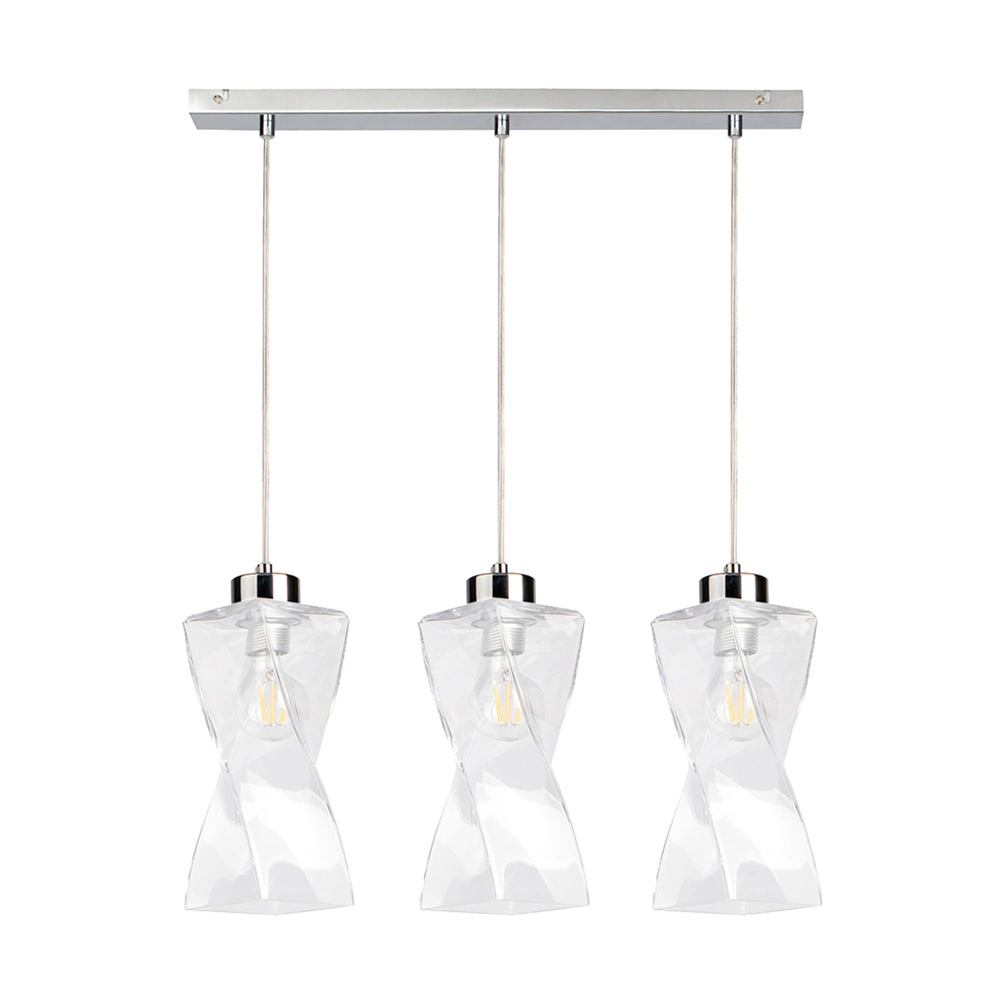The Twist Pendant Lamp with three E27 sockets provides a more robust lighting solution while maintaining a stylish, modern aesthetic. Each socket supports up to 25W, offering ample illumination for larger spaces. The metal chrome frame adds a touch of sophistication, reflecting light beautifully, while the transparent PVC cable complements the sleek design. The transparent glass shades ensure even light distribution, creating a bright and inviting atmosphere. This pendant lamp is perfect for illuminating dining areas, open-plan living spaces, or large kitchens, where its elegant design and efficient lighting can shine.