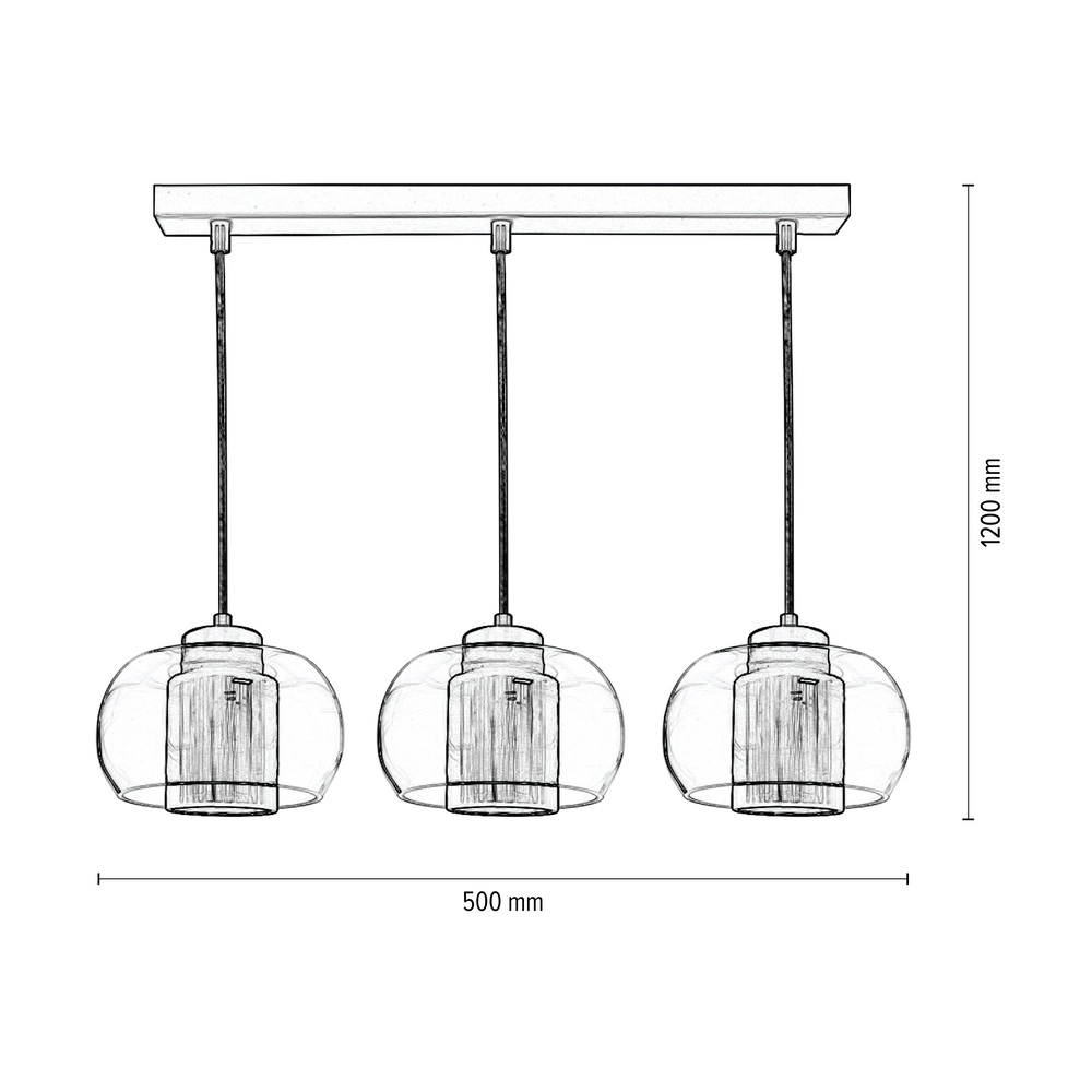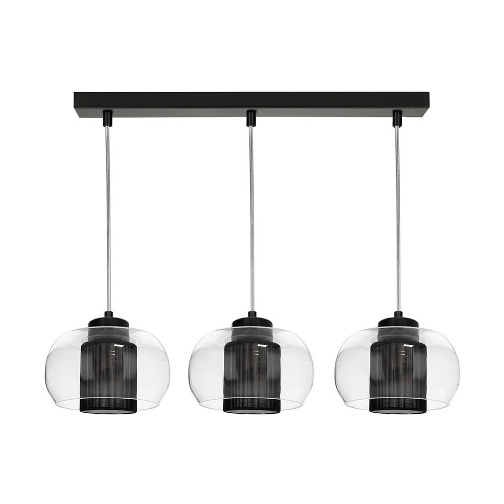 The Cordia Pendant Lamp with three E14 sockets offers an elegant solution for more extensive lighting needs. Each socket supports up to 9W, providing ample light while maintaining a sleek and sophisticated appearance. The black metal frame adds a modern touch, complemented by the transparent PVC cable that ensures a seamless look. The black fabric shade combined with transparent glass creates a striking contrast, offering a chic and contemporary aesthetic. This pendant lamp is perfect for dining areas, modern kitchens, or any space where a combination of style and functionality is desired.