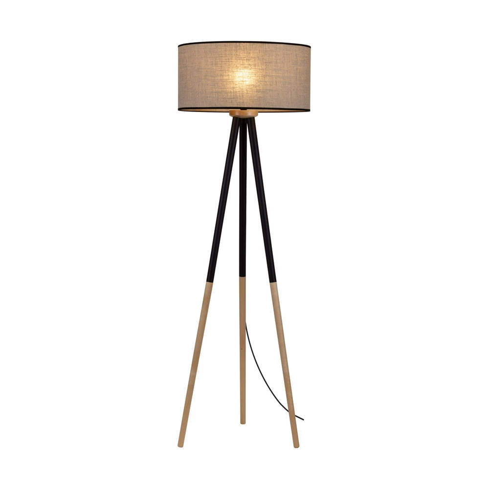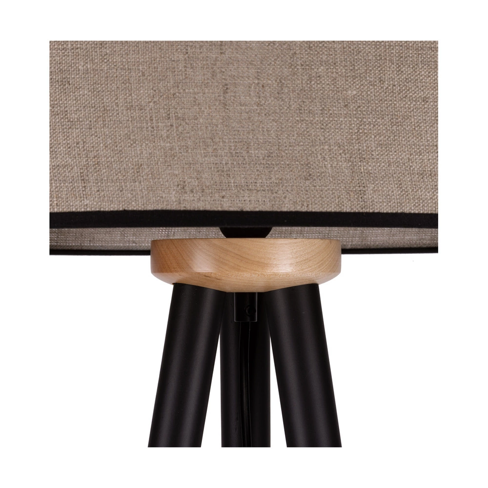Panda Floor Lamp 1xE27 Max.60W Black-Birch Wood/Black PVC Cable/Natural Linen with black ribbon Shade 6016408310025