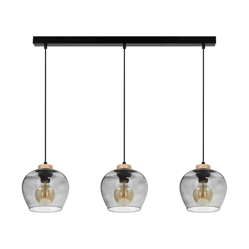 Praia Pendant Lamp 3xE27 Max.60W Oiled Oak/Black Metal/Black PVC Cable/Smoked Glass 5500060