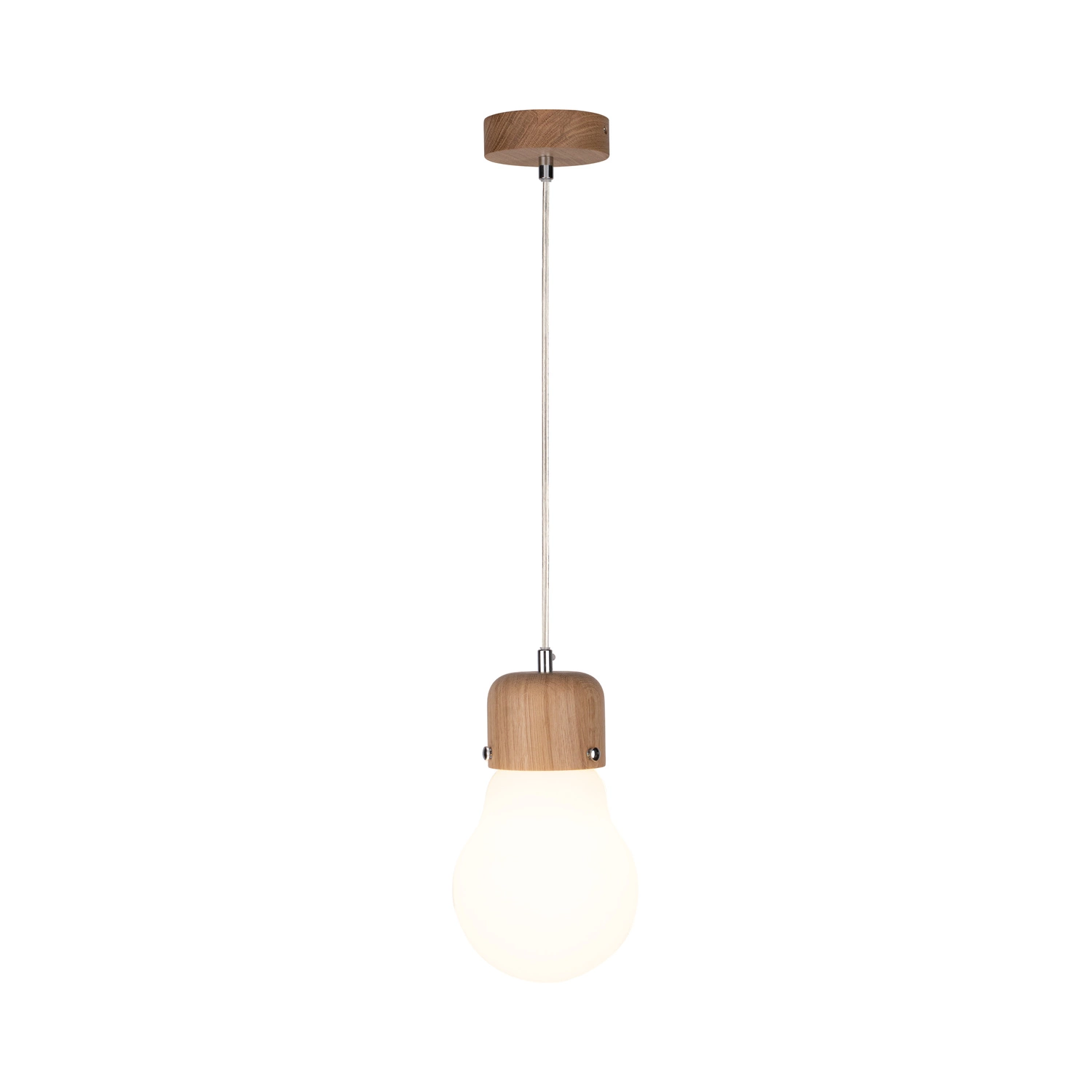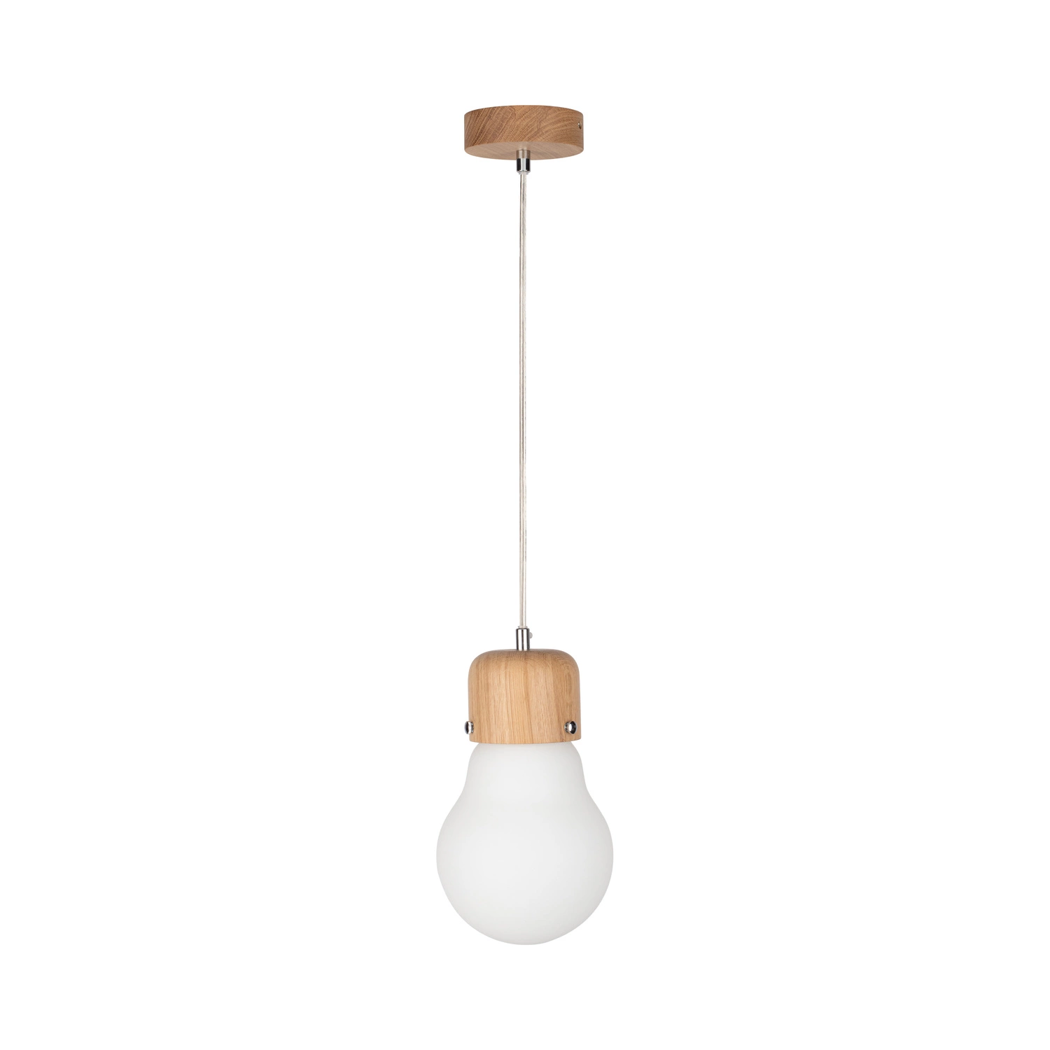 Bulb Wood Pendant Lamp 1xE27 Max.60W Oiled Oak/Transparent PVC Cable/White Glass 2811174