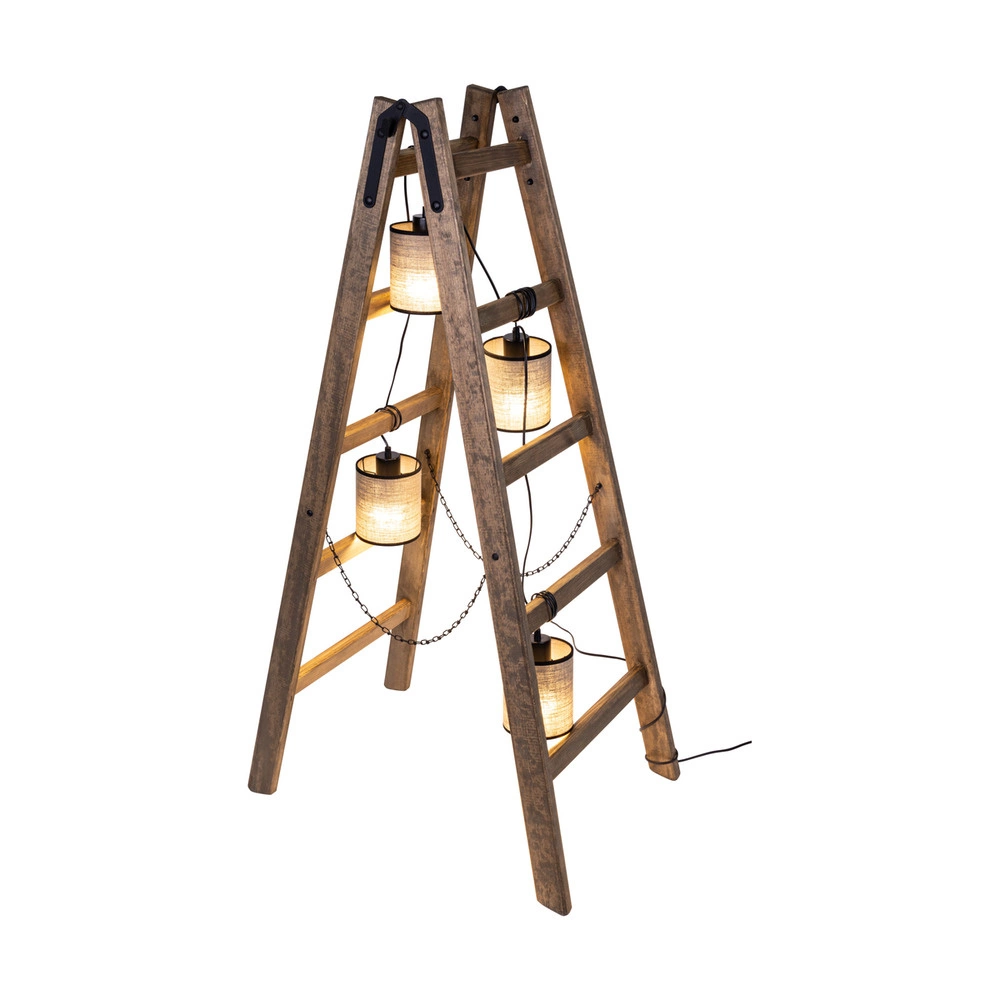 Eskalo Floor Lamp 4xE27 Max.15W LED Stained Pine on Walnut/Black Metal/Black PVC Cable/Natural Linen with black ribbon Shade 1239456
