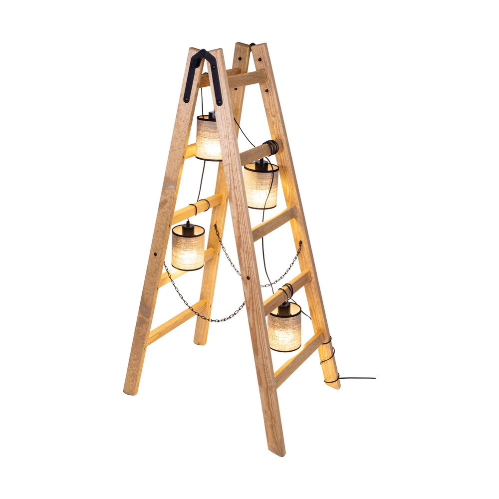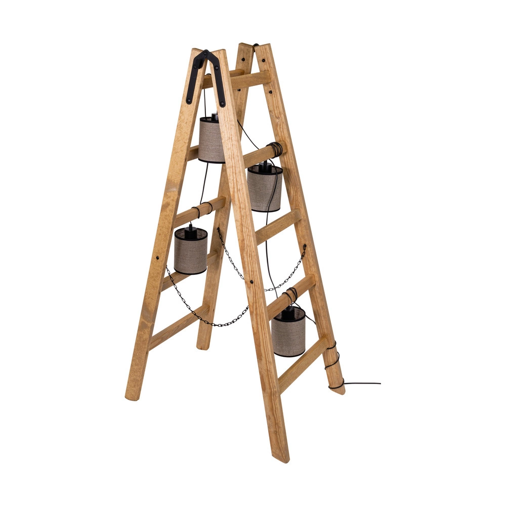 Eskalo Floor Lamp 4xE27 Max.15W LED Stained Pine Brown/Black Metal/Black PVC Cable/Natural Linen with black ribbon Shade 1239451