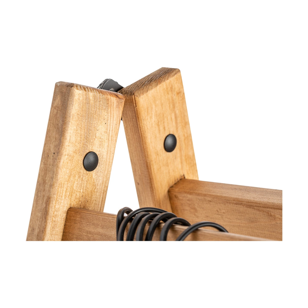 The Eskalo Floor Lamp combines practical lighting with a stylish design. Featuring four E27 sockets that each accommodate LED bulbs up to 15W, it offers efficient illumination while adding a warm, natural touch to your space. The base is crafted from stained pine in a rich brown tone, complemented by black metal accents and black PVC cables. This floor lamp is ideal for creating ambient light in living rooms, bedrooms, or offices, blending functionality with a refined aesthetic that suits various interior styles.