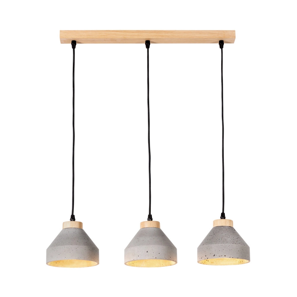 Discover modern style and functionality with the Tristan hanging lamp, which will become the focal point of your interior. Its elegant structure of oiled oak combined with raw gray concrete creates a unique design that fits perfectly into modern and industrial arrangements. Three light sources guarantee abundant lighting that will illuminate any space, adding its unique character and functionality. Black, braided cables constitute an elegant complement to the whole, giving the lamp a modern expression. Perfect for larger rooms, such as a living room, dining room or workspace, the Tristan 3xE14 lamp is not only a source of light, but also a stylish decorative element. Thanks to its versatility and unique design, it can easily fit into various interior arrangements, while offering a practical and aesthetic lighting solution.