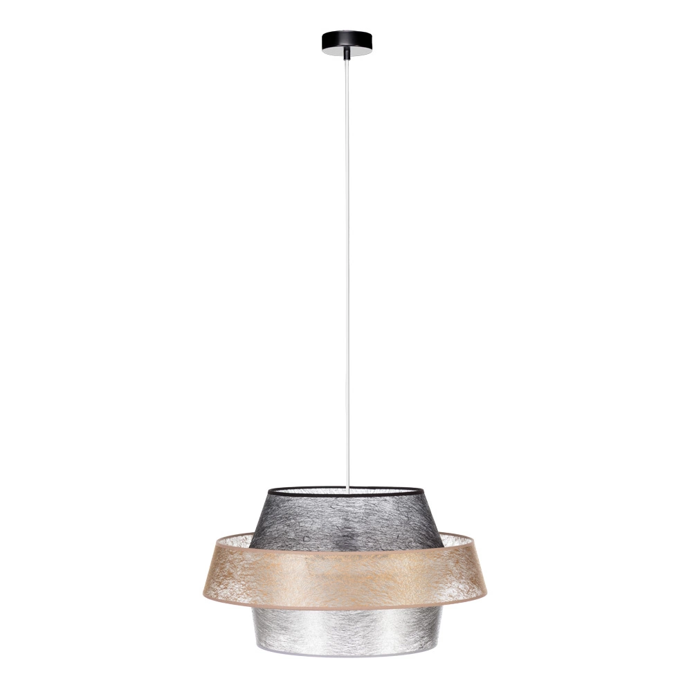 Add a touch of luxury and modernity to your interior with the Nevoa hanging lamp. Its elegant design combines black metal with transparent PVC cable and fabric in shades of black, gold and silver. The maximum power of 60W provides intense and cozy lighting, ideal for larger spaces such as the dining room or living room. The Nevoa lamp combines modern design with a luxurious finish, adding elegance and unique style to any room.