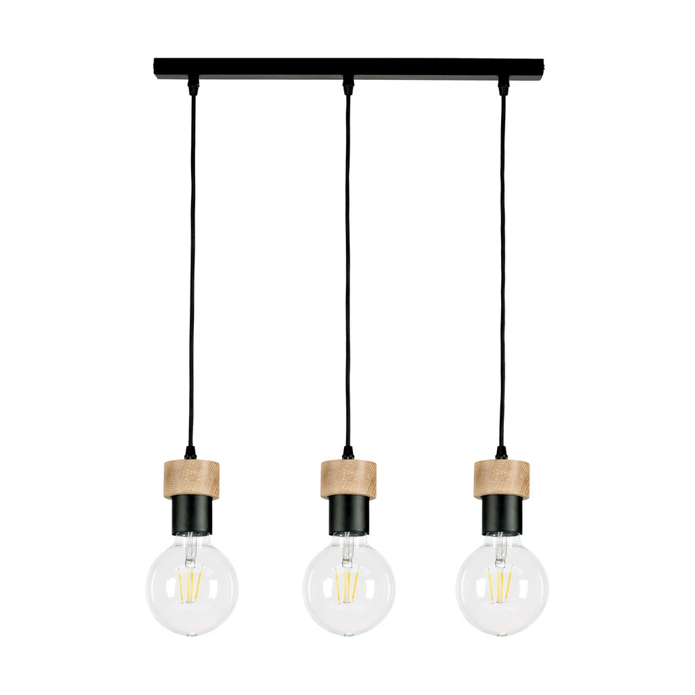 Transform your room with the Clarte Pendant Lamp, featuring three E27 sockets, each supporting up to 60W bulbs. The striking blend of oiled oak and black metal, complemented by a black fabric cable, makes this lamp a standout addition to any décor. Perfect for larger spaces such as dining areas or living rooms, the Clarte Pendant Lamp provides extensive illumination while adding a sophisticated and contemporary flair to your home.The combination of oiled oak and black metal offers a modern yet rustic look that fits seamlessly into various interior styles, from contemporary to industrial and rustic.With three E27 sockets, this pendant lamp provides extensive illumination, making it ideal for larger spaces such as dining rooms, living areas, or kitchen islands.The black fabric cable is adjustable, allowing you to customize the hanging length to suit your ceiling height and desired look.Designed for straightforward installation, this pendant lamp comes with all the necessary hardware and clear instructions, ensuring a hassle-free setup.Use it in your living room to provide both ambient and task lighting, enhancing the overall ambiance.Provides practical lighting solutions while also serving as a decorative piece, adding a touch of elegance and sophistication to your interior.