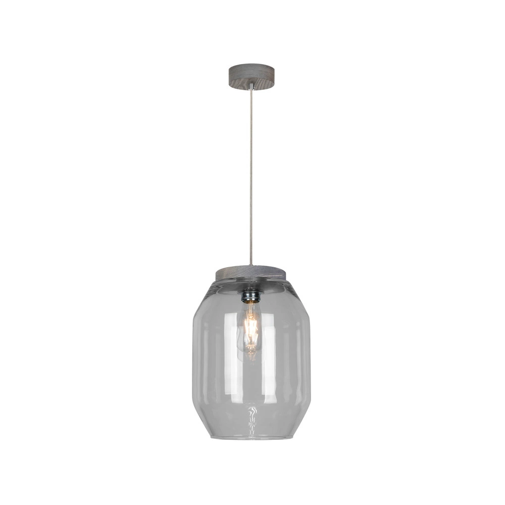 Vaso Pendant Lamp 1xE27 Max.60W Stained Pine Gray/Transparent PVC Cable/Smoked Glass 169020157