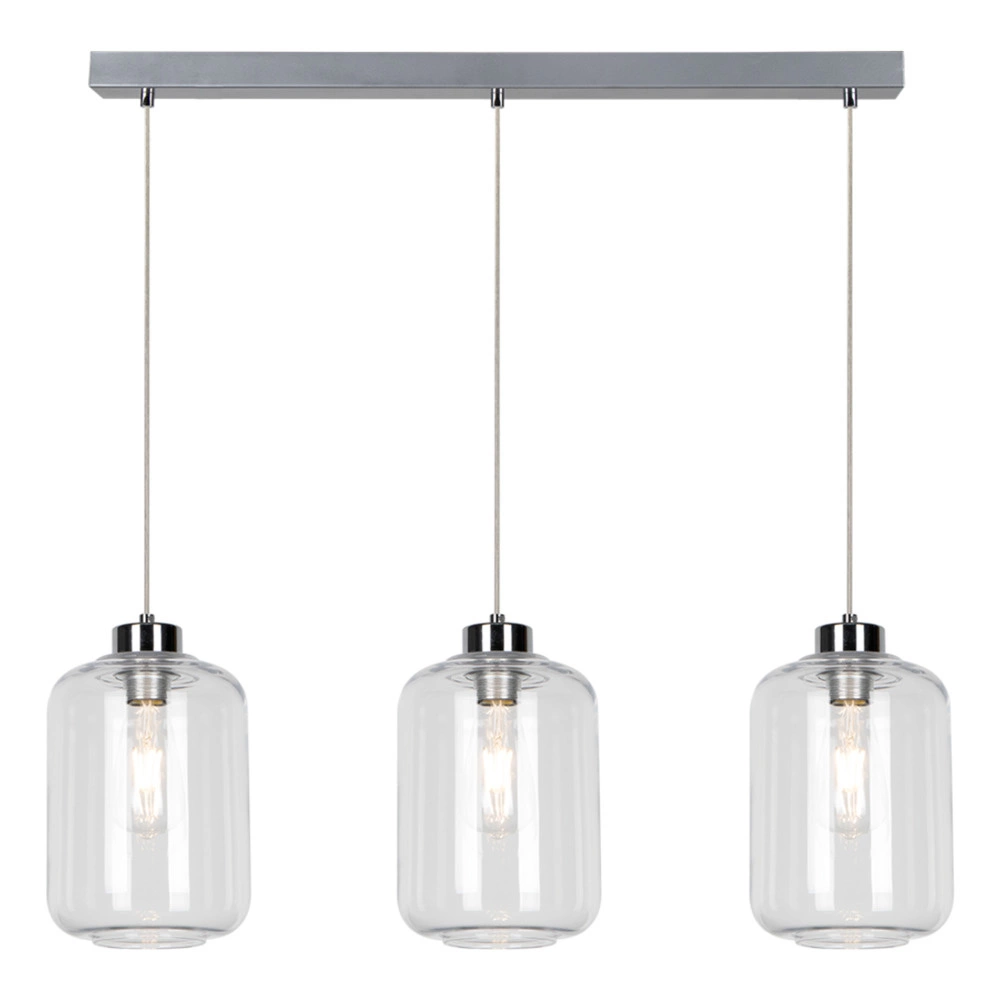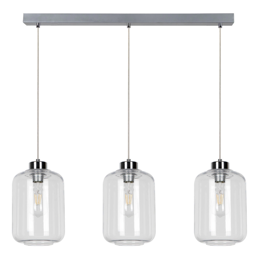 Tarro Pendant Lamp 3xE27 Max.60W Chrome Metal/Transparent PVC Cable/Transparent Glass 15880328