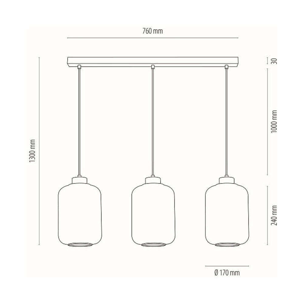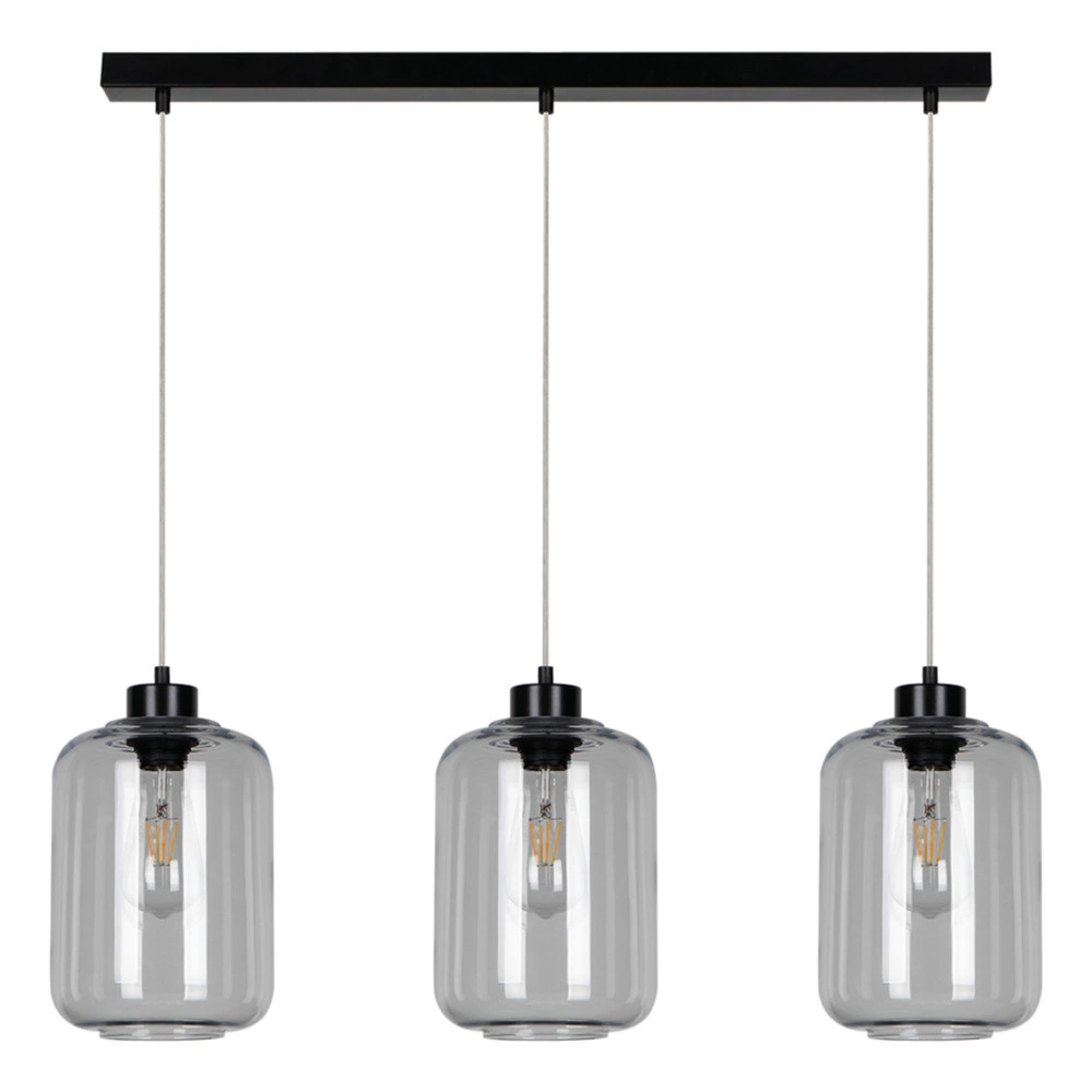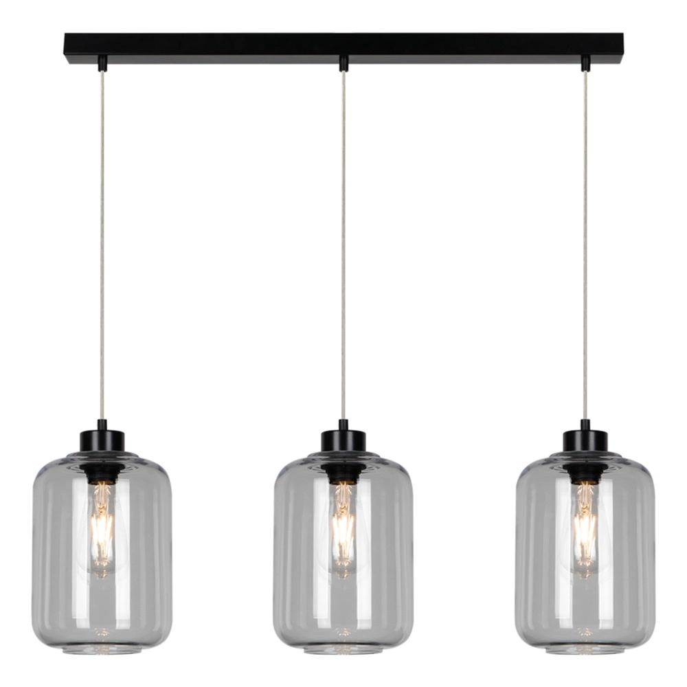 Tarro Pendant Lamp 3xE27 Max.60W Black Metal/Transparent PVC Cable/Smoked Glass 15890304