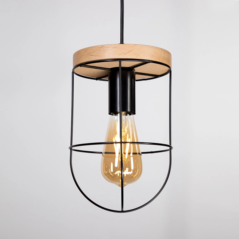 Netuno Pendant Lamp 1xE27 Max.60W Oiled Oak/Black Metal/Black PVC Cable 184159104