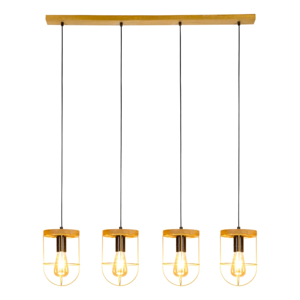Netuno Pendant Lamp 4xE27 Max.60W Stained Pine Brown/Black Metal/Black PVC Cable/Gold Metal 1811059451
