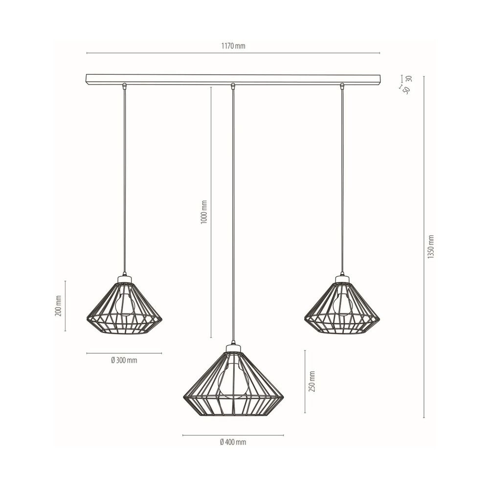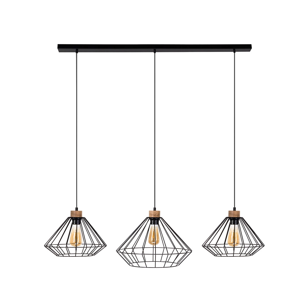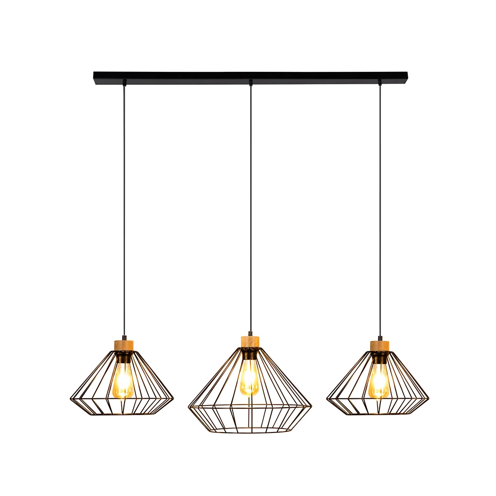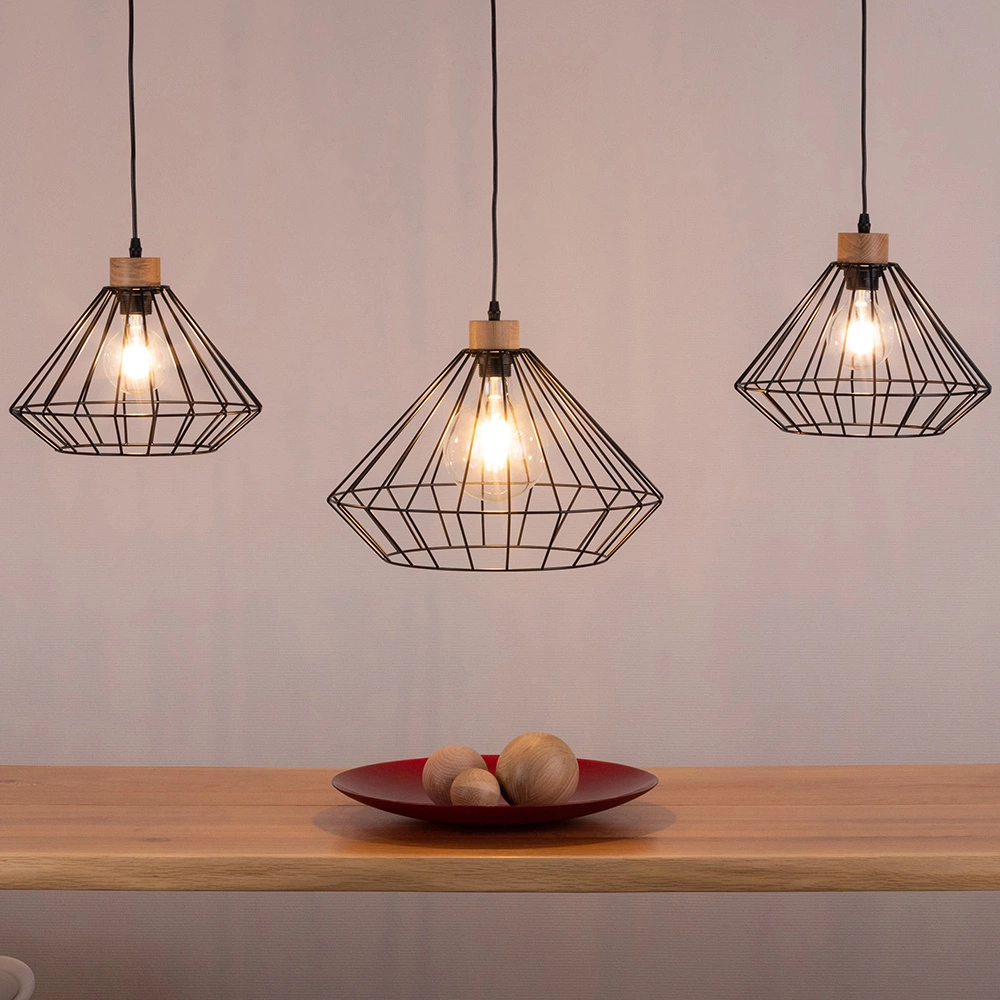 Raquelle Pendant Lamp 3xE27 Max.60W Oiled Oak/Black Metal/Black PVC Cable 187319304