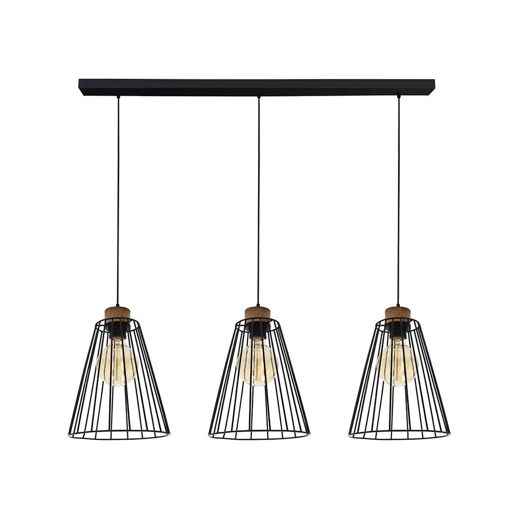 Illuminate your space with the captivating design of the Swan Pendant Lamp, featuring three E27 sockets, each capable of supporting up to 60W. This lamp showcases a harmonious blend of oiled oak and black metal, creating a striking contrast that enhances both modern and rustic interiors. The black PVC cables add a sleek, contemporary element, making this lamp a perfect fit for dining rooms, living areas, or large kitchen islands. The triple light source provides ample illumination, making it ideal for creating a cozy, well-lit environment. The Swan Pendant Lamp is not just a light fixture but a statement piece that elevates the style of any room.