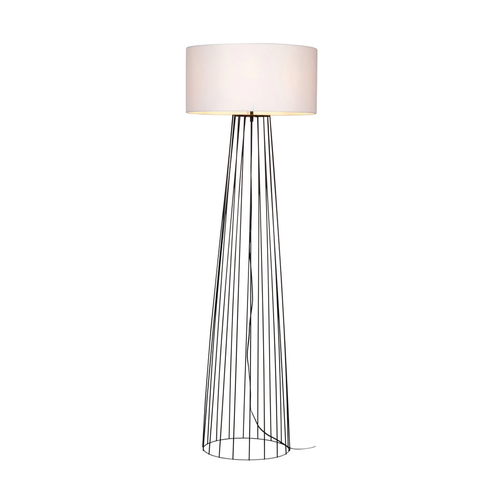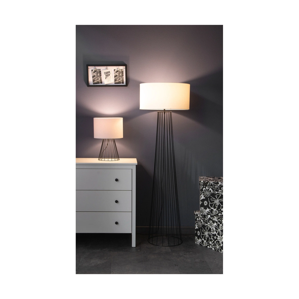 Swan Floor Lamp 1xE27 Max.60W Black Metal/Black PVC Cable/White Fabric Shade 79229104