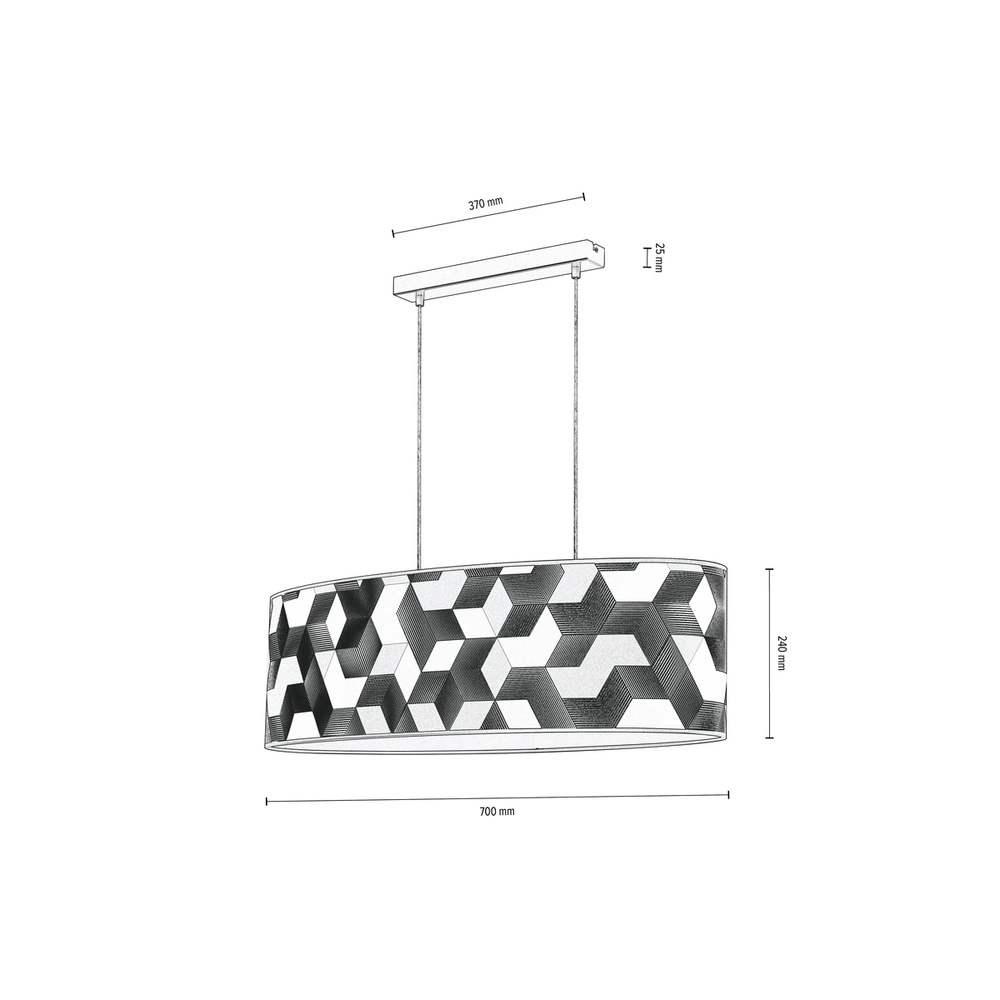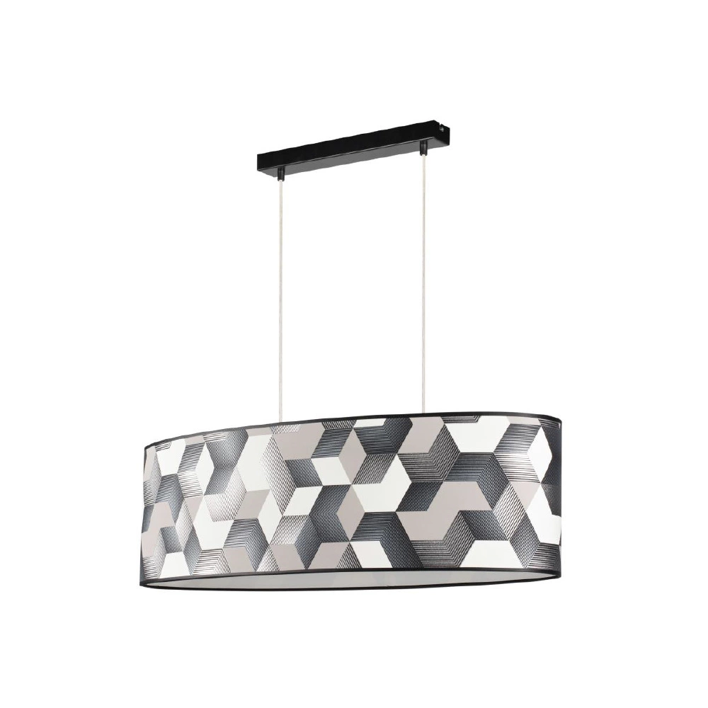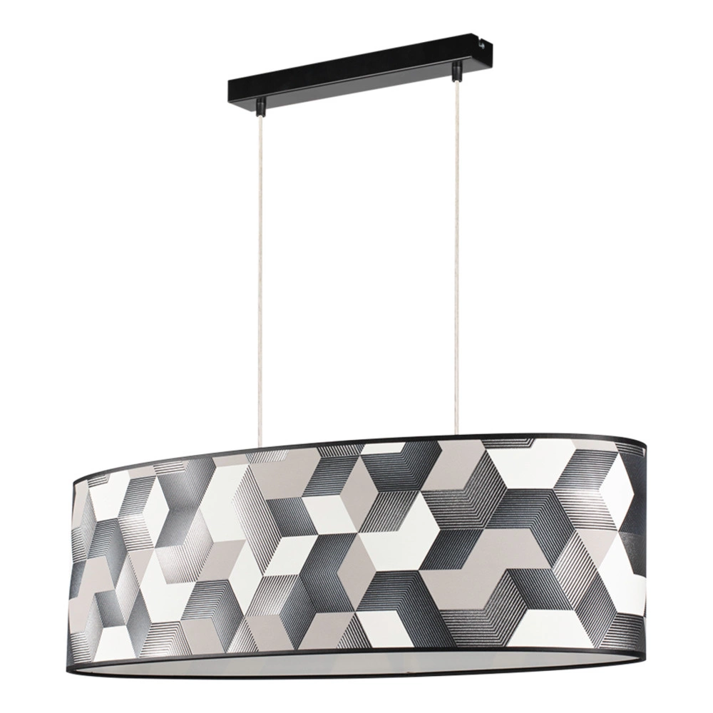 Discover the dynamic style of the Espacio Pendant Lamp, designed to add a contemporary edge to your decor. Featuring a sleek black metal frame, this lamp contrasts beautifully with the vibrant multicolor wallpaper shade, creating an eye-catching centerpiece. The transparent PVC cable ensures a clean, modern look while providing the flexibility needed for versatile installations. With two E27 bulb sockets, the Espacio Pendant Lamp delivers generous lighting, perfect for brightening up larger spaces such as dining rooms, living areas, or open-plan kitchens. This pendant lamp not only offers practical illumination but also makes a bold design statement, seamlessly blending modern sophistication with artistic vibrancy.