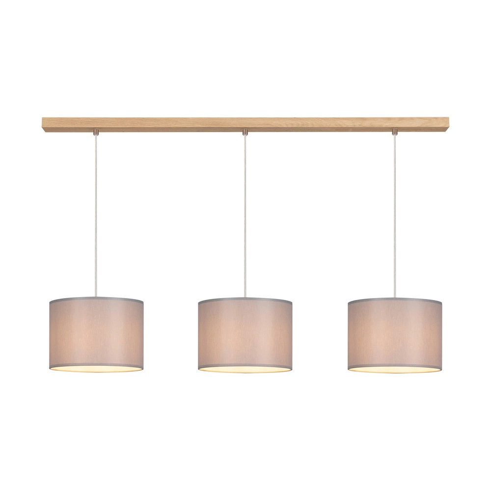 Dove Pendant Lamp 3xE27 Max.40W Oiled Oak/Transparent PVC Cable/Gray Fabric Shade 16390374