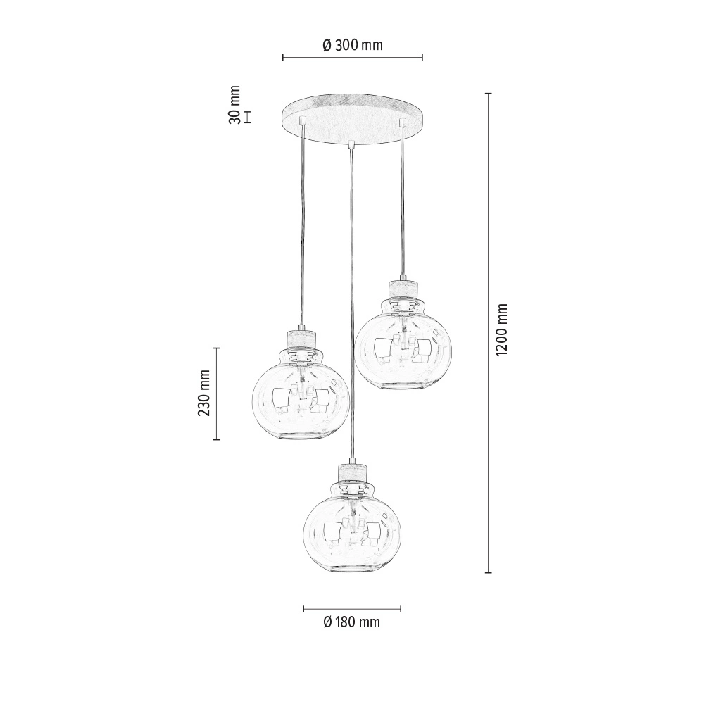 Serena Pendant Lamp 3xE27 Max.60W Oiled Oak/Black PVC Cable/Brown Glass 9741374