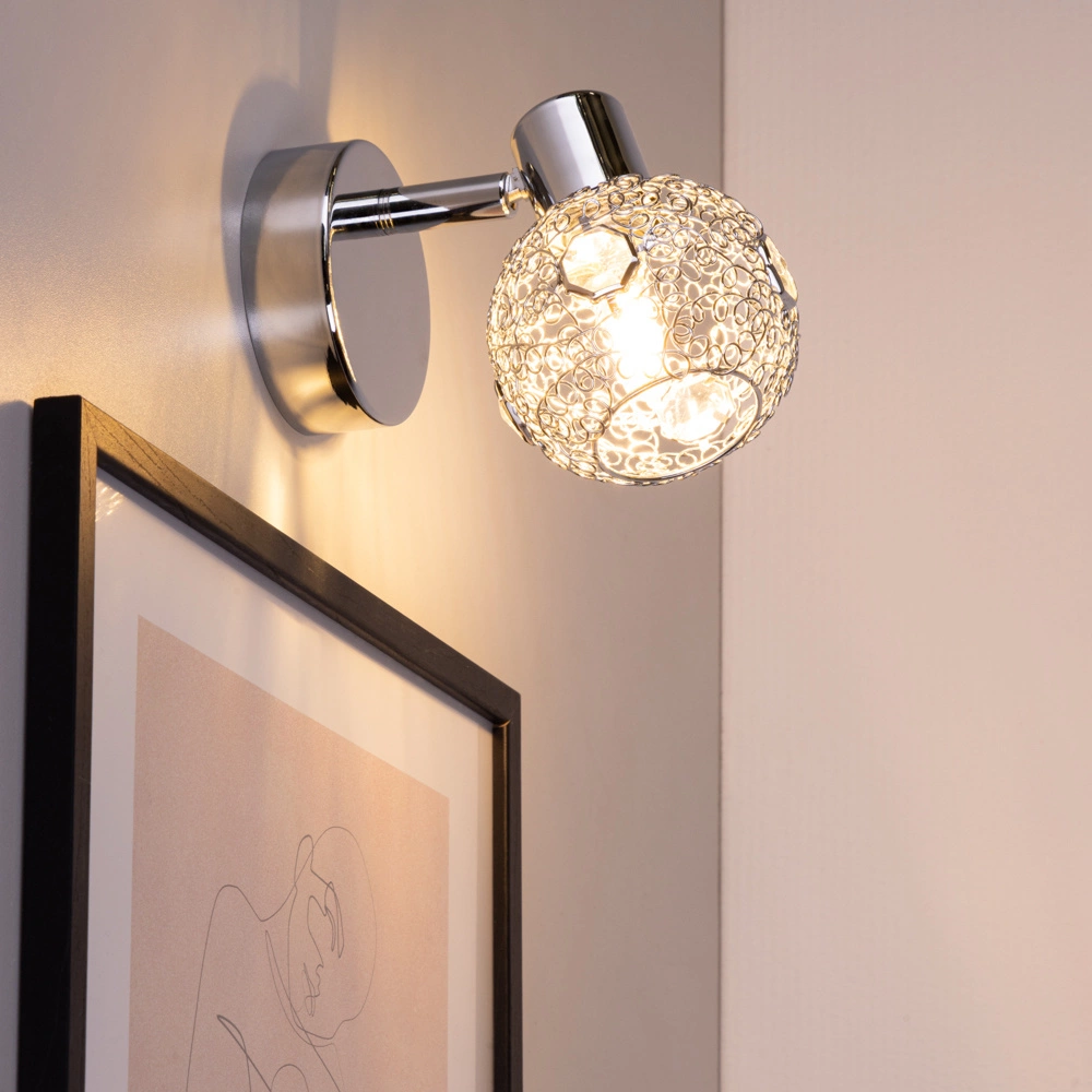 The Lena Wall Lamp showcases a sleek chrome metal finish and transparent glass shade, providing a clean and modern aesthetic. With a single G9 socket, this lamp is perfect for accentuating walls and adding a touch of elegance to any room.