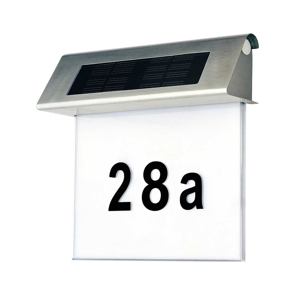 Solar House Number Wall Lamp Incl. 2x0,07W LED Satin Metal/White-Black Synthetic Material 6710102
