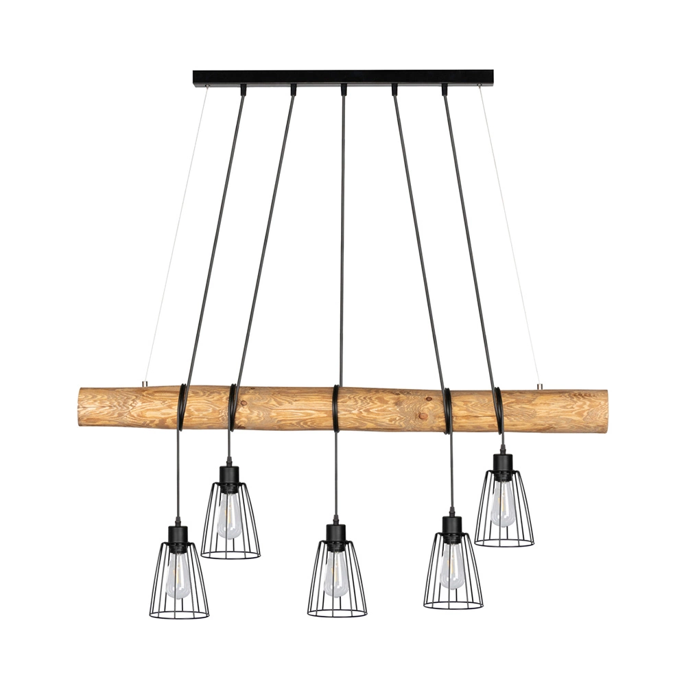 Discover unique style and functionality with the Trabo Long hanging lamp. This lamp combines the warmth of stained pine with modern black metal, creating an eye-catching contrast that brings elegance and character to the interior. Equipped with five E27 sockets, enabling the use of bulbs with a power of up to 60W each, Trabo Long provides intense, even lighting of large spaces, such as the dining room, living room or the space above the table. The black PVC cable adds an industrial touch, emphasizing the modern look of the lamp. Perfect for people who value elegant design combined with high functionality, the Trabo Long Pendant Lamp is an excellent choice for spacious and modern interiors.