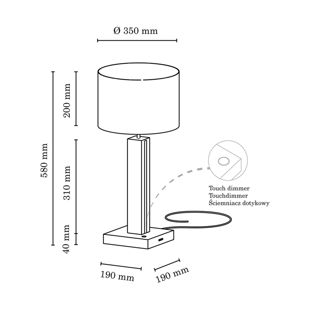 The Asseto Table Lamp offers a blend of functional lighting and stylish design. Equipped with a single E27 socket, it supports bulbs up to 25 watts, while its integrated 2xLED 24V system provides an impressive 980 lumens of warm, 3000K light. The oiled oak base delivers a touch of natural elegance, enhanced by the anthracite fabric cable that adds a modern edge. The beige fabric shade softens the light, creating a cozy and inviting atmosphere. With a touch dimmer, you can easily adjust the brightness to suit your needs, making this lamp ideal for desks, side tables, or nightstands.