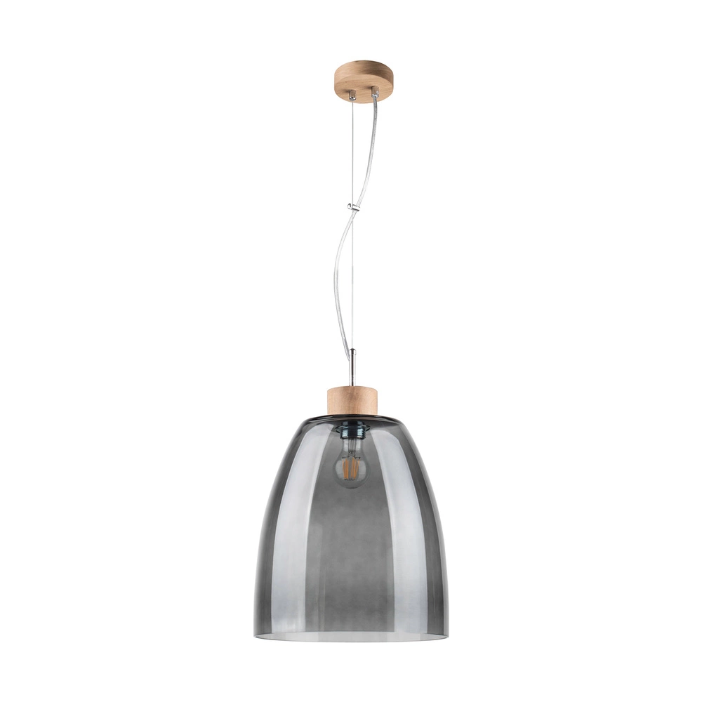Campana Pendant Lamp 1xE27 Max.60W Oiled Oak/Transparent PVC Cable/Smoked Glass 9843074