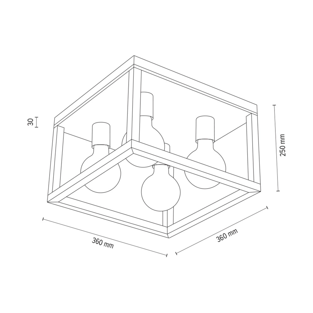 Lampa Sufitowa Kago 4xE27 Max.60W Dąb Olejowany/Czarny Metal 9154474