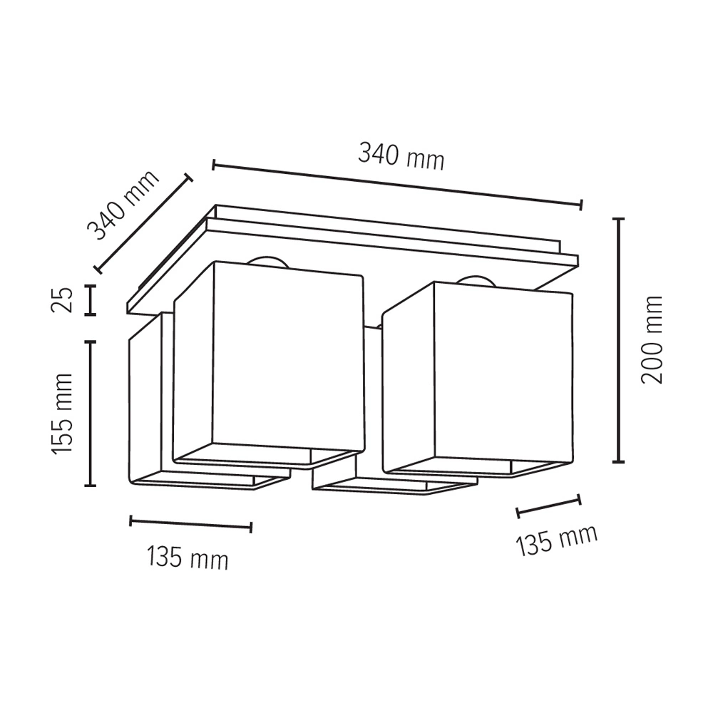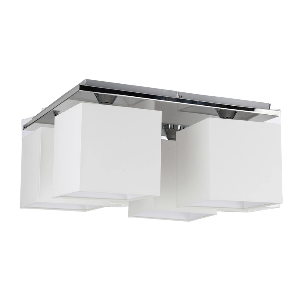 Lampa sufitowa RIVOLI jest lampą 4 punktową o max. mocy 25W każdy, zakończona kloszami z tkaniny w kolorze białym. Elementy metalowe zostały wykończone w kolorze chrom.
