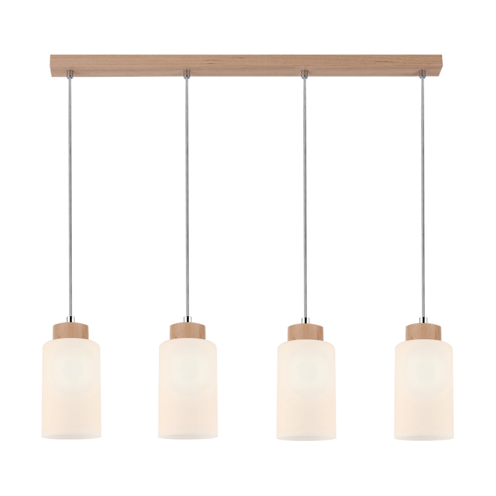 Lampa wisząca Bosco 4xE27 maks. 60W drewno brzozowe/białe szkło/przezroczysty kabel PVC 1720460