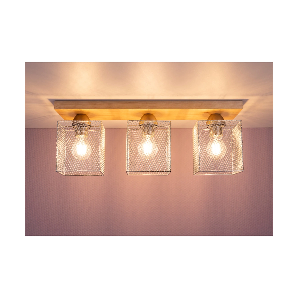 Lampa sufitowa Norman Wood 3xE27 Max.25W Drewno brzozowe/Chromowany metal 8175360