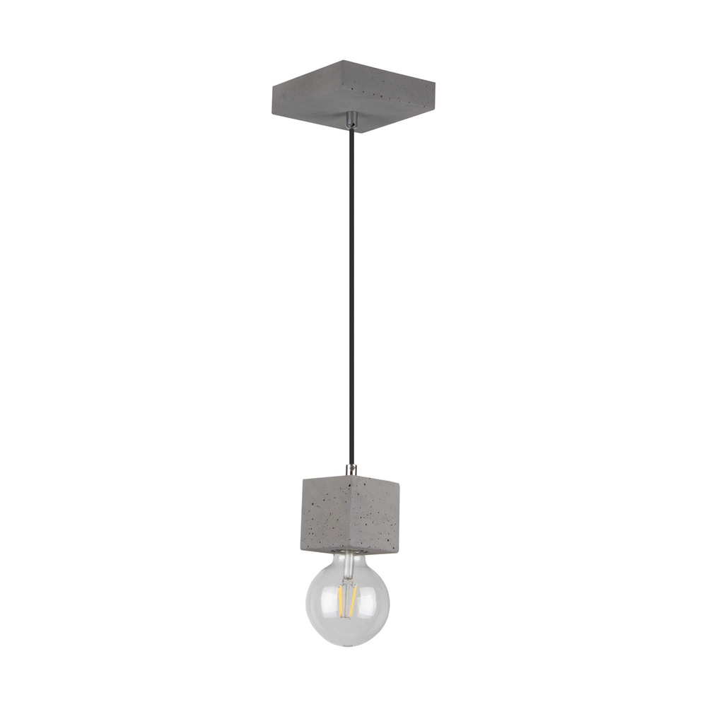 Mocna kwadratowa lampa wisząca 1xE27 Max.60W Szary beton/Czarny kabel z tkaniny 7089136