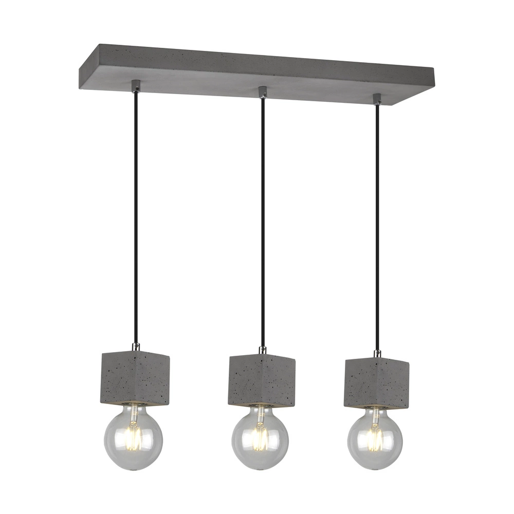 Mocna kwadratowa lampa wisząca 3xE27 Max.60W Szary beton/Czarny kabel z tkaniny 7089336