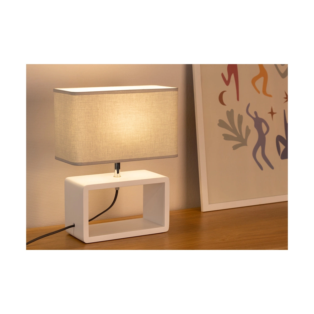 Lampa stołowa Cadre Quadrat 1xE27 maks. 25W białe drewno bukowe/antracytowy kabel z tkaniny/szary klosz z tkaniny 7010213310234