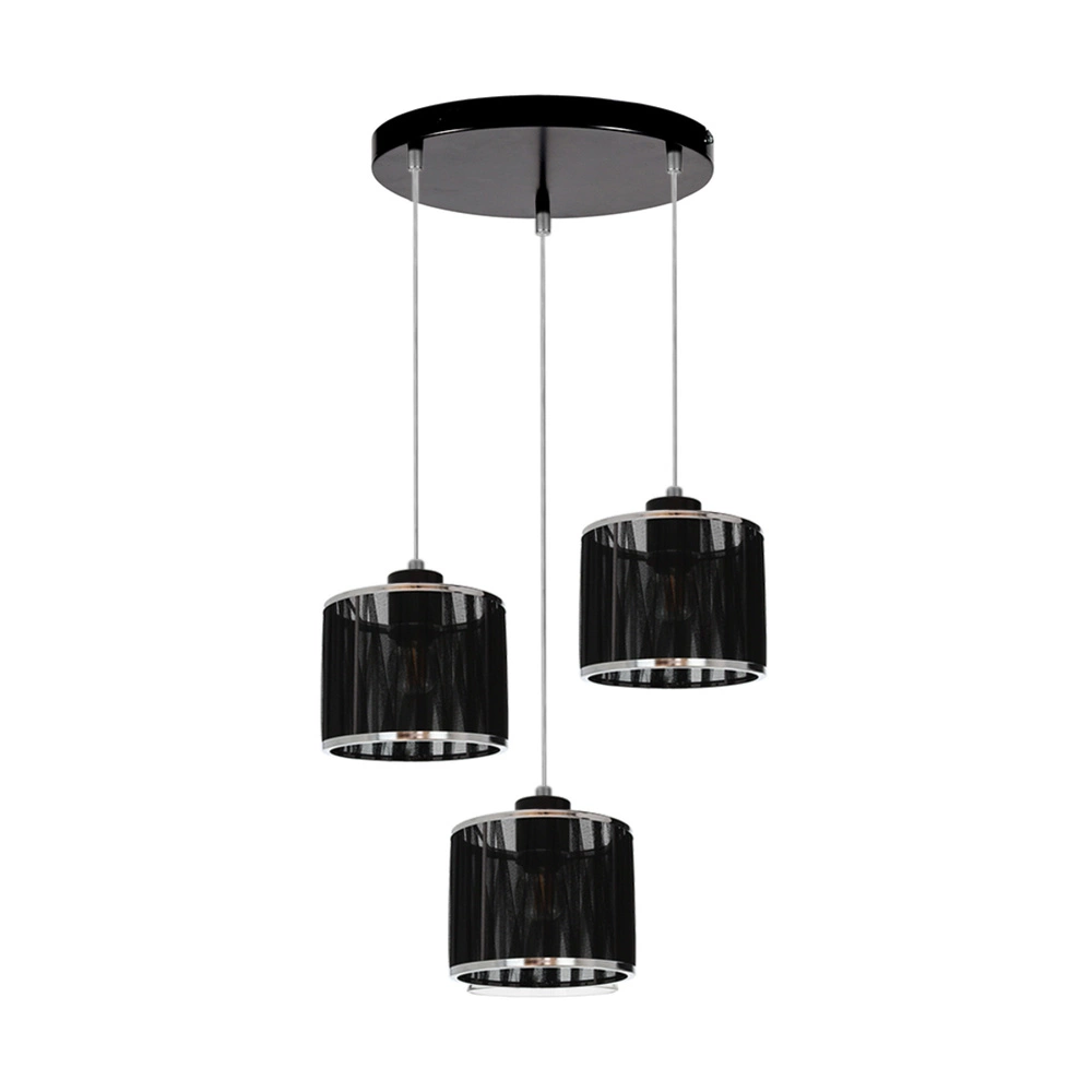 Lampa Wisząca Anina 3xE14 Max.25W Czarny Metal/Przezroczysty Kabel PCV/Czarno-Chromowy Klosz 17931304