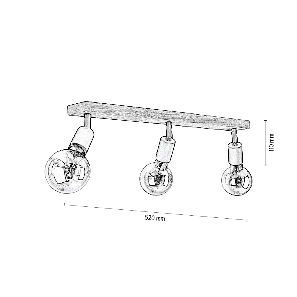 Lampa Sufitowa Tamea 3xE27 Max.60W Dąb Olejowany/Czarny Metal 2037319800000