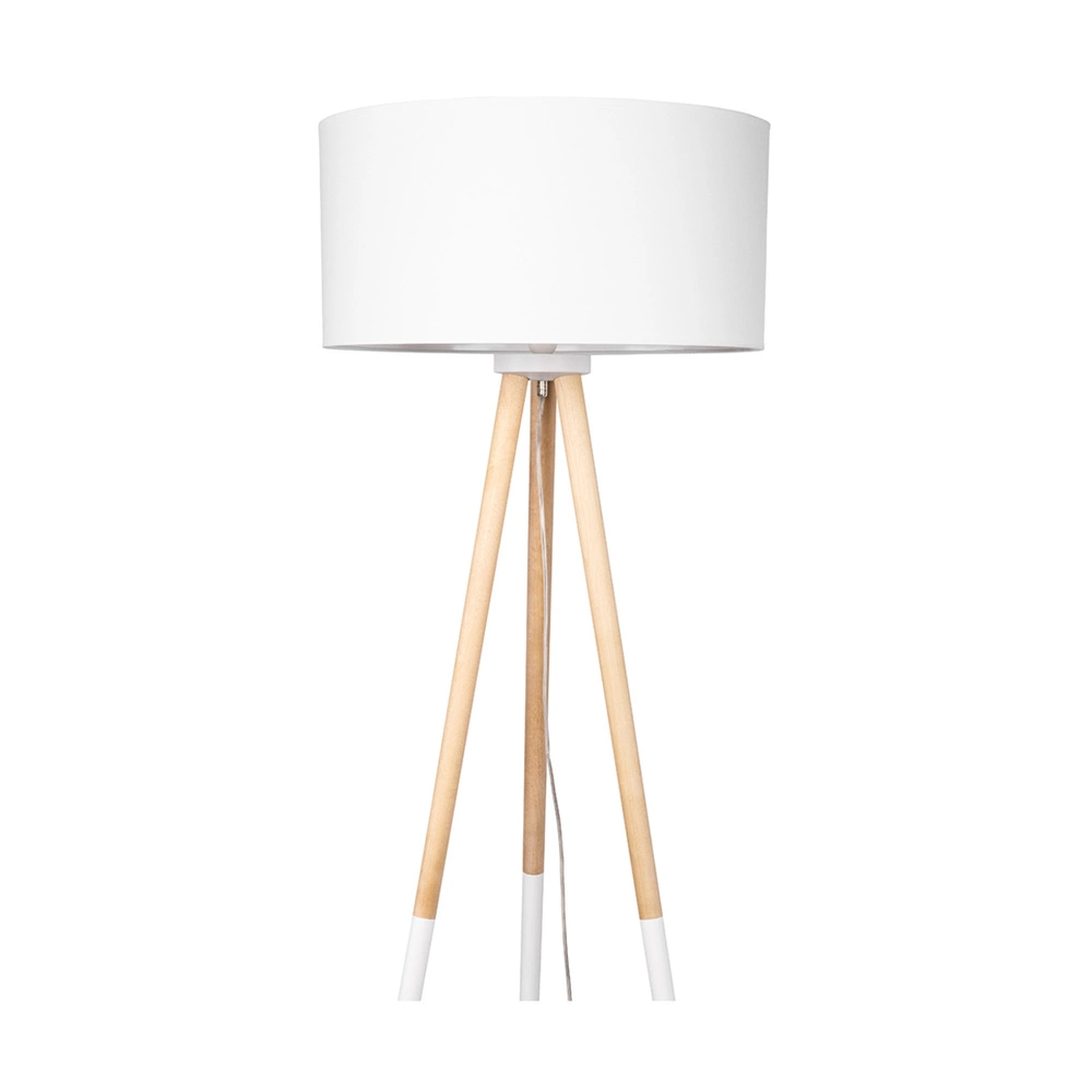Lampa podłogowa Panda 1xE27 maks. 60W drewno brzozowo-białe/przezroczysty kabel PVC/biały klosz z tkaniny 6010208210510