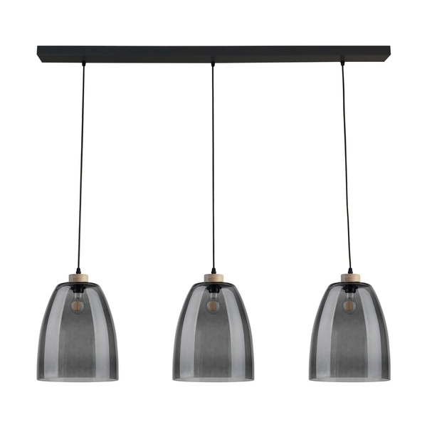 Lampa Wisząca Asmara 3xE27 Max.60W Dąb Olejowany/Czarny Metal/Czarny Kabel PCV/Szkło Dymne 5500032