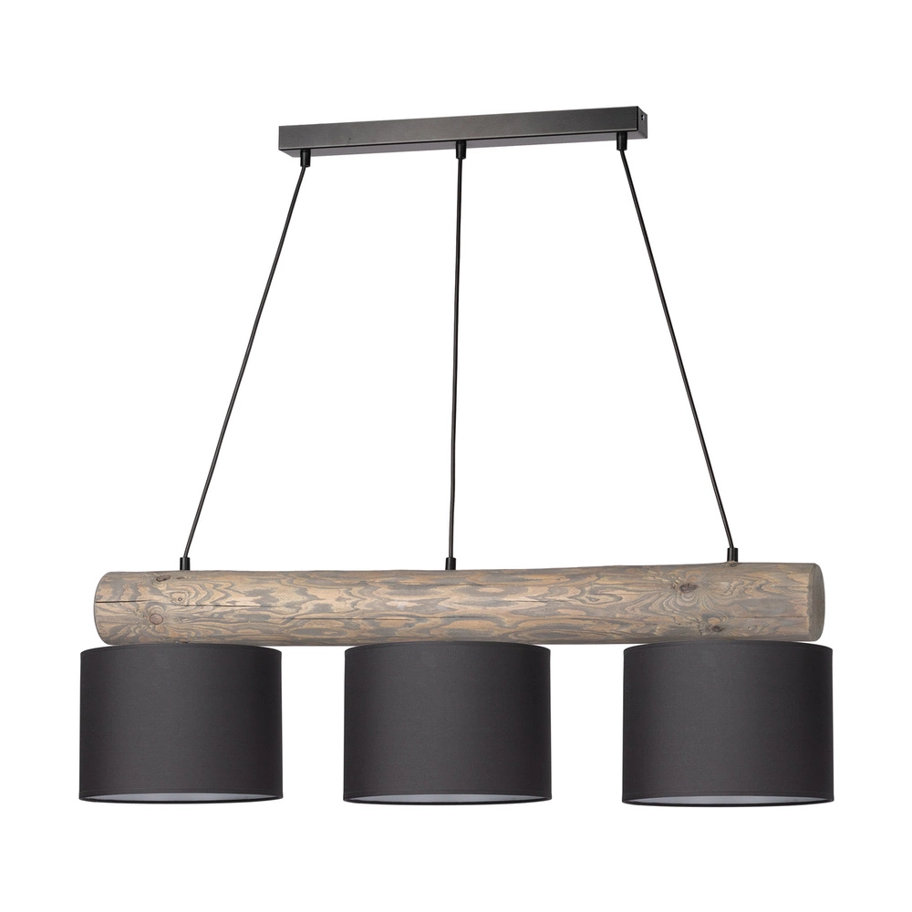 Lampa wisząca Pino Mix 3xE27 maks. 40W barwiona sosna szara/czarny metal/czarny kabel PVC/antracytowy klosz z tkaniny 6760489404